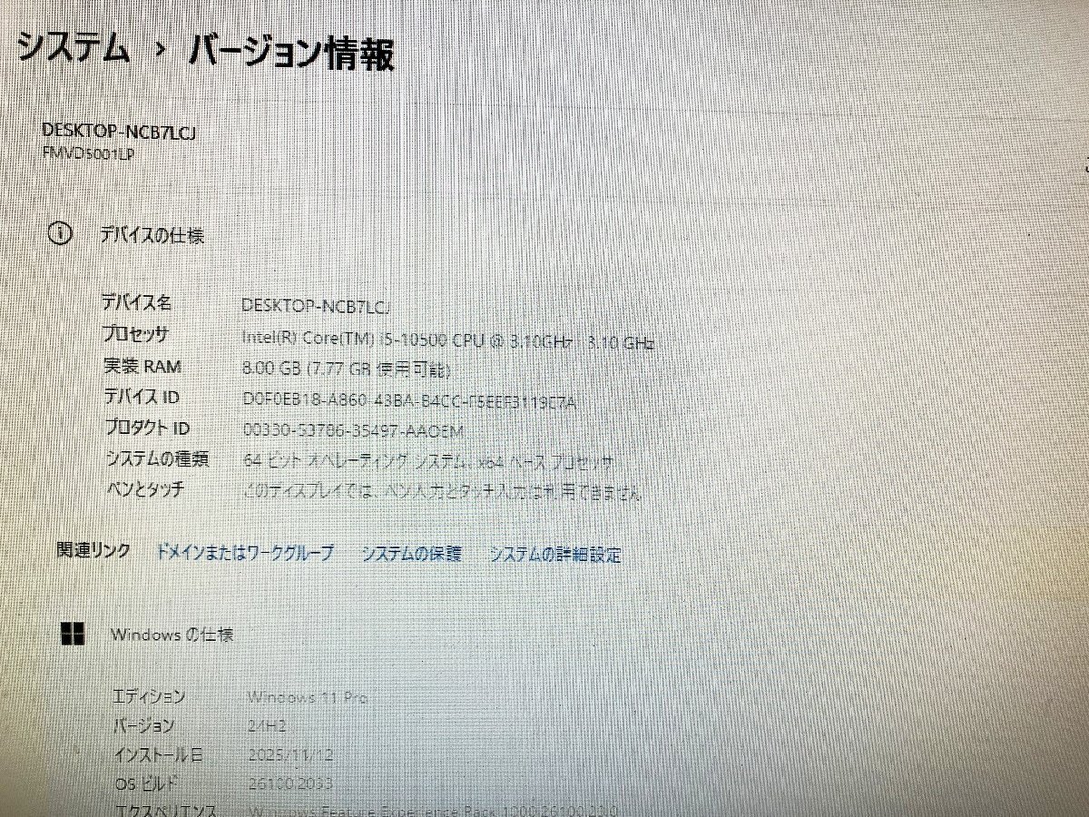 | グラフィック | Intel(R) UHD Graphics 630 |