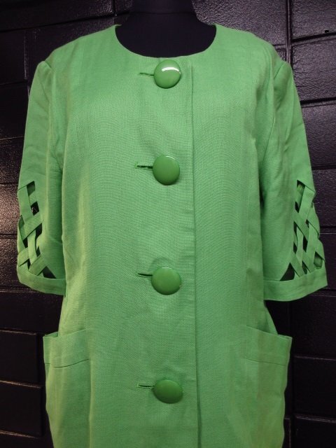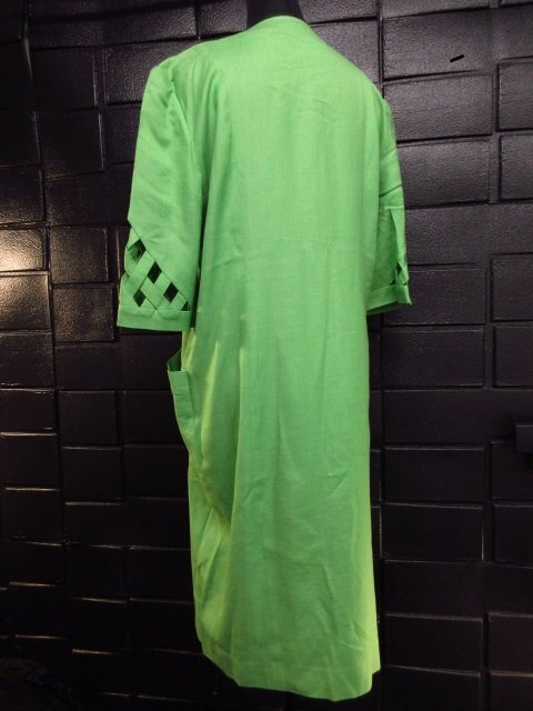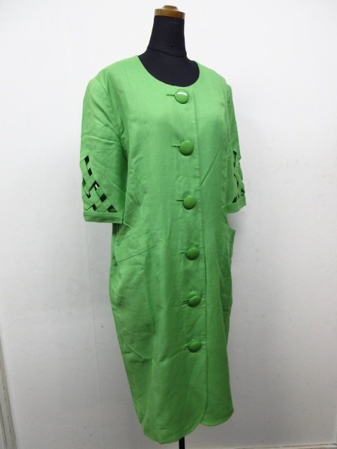 美品 帝国ホテルブティック レジアンス ワンピース 日本製 グリーン ボタン レーヨン麻混紡 REGENCE レディース 40 袖デザイン