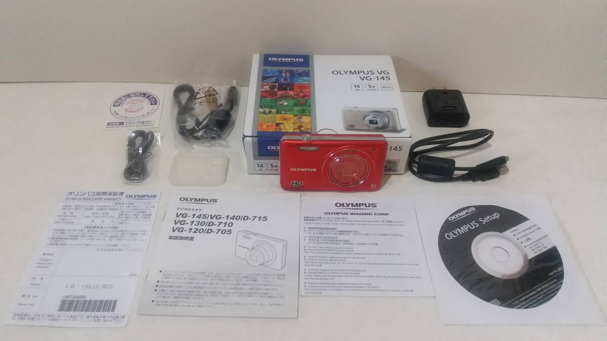 OLYMPUS VG-145 レッド フルセット 撮影可能品 [背面十字キーの反応が悪いためワケあり品]