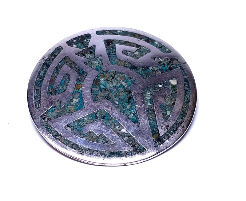 【侍】Mexican Taxico メキシコ タキシコ SILVER925 アバロン象嵌 アワビ貝 ブローチ ヴィンテージ 20=964