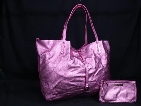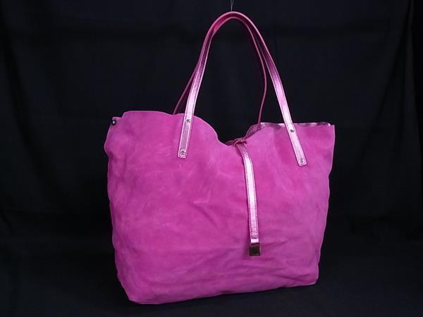 1円 ■美品■ TIFFANY&Co ティファニー レザー リバーシブル ポーチ付き ショルダーバッグ トート 肩掛けかばん ピンク系 FU6535