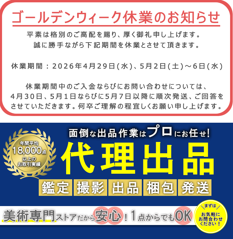 「ゆうパック」にて配送致します。 商品を厳重梱包する為商品よりも多少大きめの梱包になる場合がありますがご了承下さい。 また、落札価格が30万円を超える場合はゆうパックのセキュリティサービスにてお送り致します。送料は据え置きとなりますのでご安心下さい。 ※配送業者の都合により、予告なく配送業者が変更になる場合がございますので予めご了承下さい。 ※ゆうパックの場合、配送時間帯を下記からお選びいただけます。 午前、12:00~14:00、14:00~16:00、16:00~18:00、18:00~20:00、19:00~21:00 180~260サイズの場合は「セイノースーパーエクスプレス運輸」にて配送致します。 【セイノースーパーエクスプレス運輸の場合の注意事項】 ※配送先が『沖縄』の場合、航空便となりますので配送料金にご注意ください。 ※配送業者の変更は出来ませんので、予めご了承下さい。 ※配送業者の規約上、日曜・祝日・祭日の配達指定は出来ません。 ※配送業者の規約上、配送時間帯はお選びいただけません。