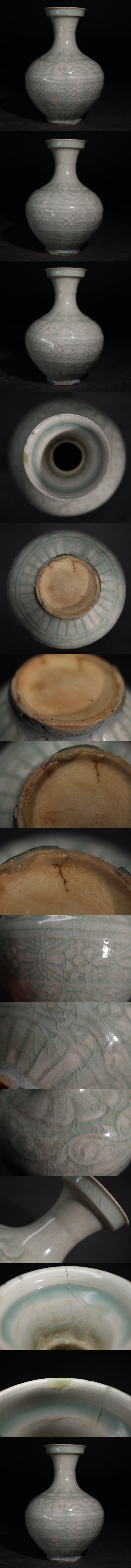 | 時代 青磁釉 影青釉 花瓶 / 中国美術 青白磁 花器 壺 煎茶飾 検索: 湖田窯 .G3573 |