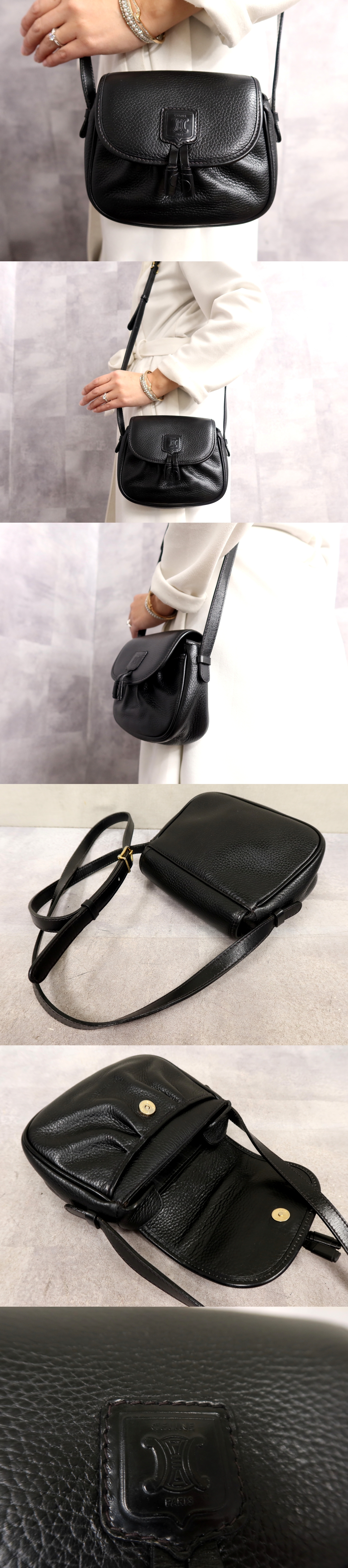 ●超美品●CELINE セリーヌ●フラップ●カーフ レザー 本革●ショルダー バッグ●黒●ゴールド金具●斜め掛け●収納 かばん●Js64781