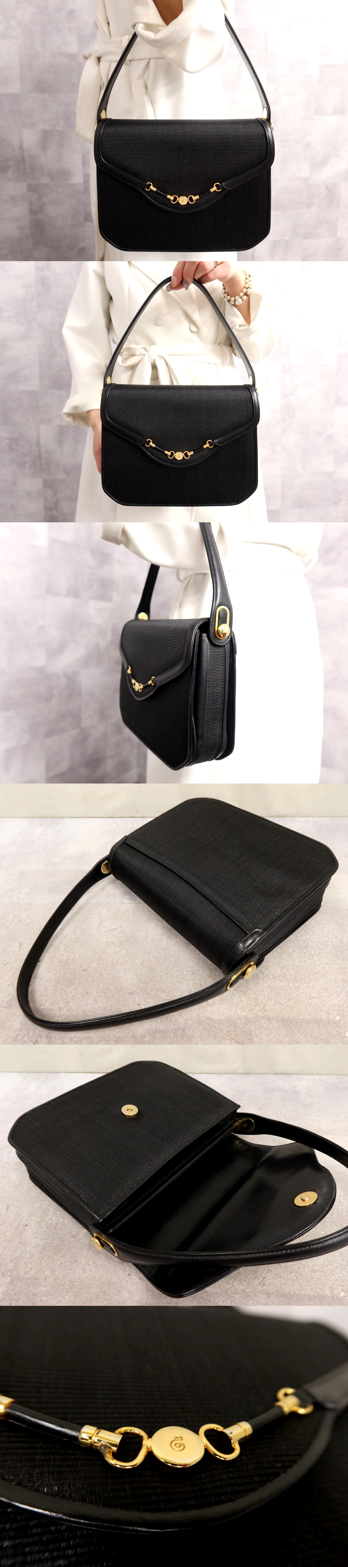 ●超美品●COMTESSE コンテス●フラップ●ホースヘアー 本 馬毛 革●ハンド バッグ●黒●ゴールド金具●腕掛け●収納 かばん●Js64739