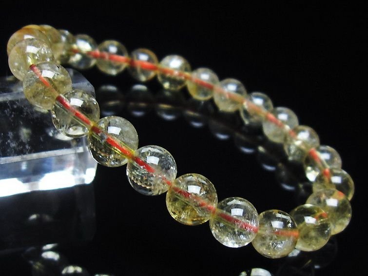 | ■商品名: 虹入りシトリンブレスレット ■商品ID: T366-12658 ■商品重量:約 13g ■商品サイズ:内周約:150mm(±5mm)粒直径約:7mm(±0.5mm) 【シトリン(黄水晶)】 シトリンは和名で「黄水晶(きすいしょう)」と呼ばれるように、水晶に鉄イオンが混入し、放射線による結晶格子欠陥によって黄色に変色したものです。 シトリンは黄色い色合いからヨーロッパの柑橘類シトロンが語源となり名付けられたといわれています。 一口に黄色と言っても鮮やかな黄色から温かみのあるオレンジがかったものまで様々で、シトリンの持つ色合いは人をポジティブな気持ちにさせてくれる魅力を秘めています。 シトリンは優しくもエネルギッシュなパワーを持つことから古来より「太陽を象徴する石」といわれ、幸福と繁栄をもたらすとされてきました。 また、黄色や金色をしたパワーストーンは金運や財運を高める効果があるとされ、シトリンは金運向上に効果を発揮するパワーストーンの代表格としても知られ人気を博しています。 シトリンは金運と仕事運の向上と人間関係の調和をもたらすとされていますので、人に携わる仕事で成果をもたらしたいと考えている方や職場内でのコミュニケーションを円滑にしたいと考えている方におすすめです。 また、緊張や不安感などのマイナス感情を取り除き生命力を高めるともされているので、気分が落ち込みやすかったり疲労をため込んでしまっている状態の方には優しいパワーで癒しと活力を与えてくれるでしょう。 ⇒ シトリンをもっと詳しく ◆ワンポイント情報 シトリンは大昔トパーズの代用品として「シトリントパーズ」や「ゴールデントパーズ」「クォーツトパーズ」などの別称で呼ばれることが多かったようです。 「ゴールデントパーズ」と「インペリアルトパーズ(ゴールドカラーのトパーズ)」が同様の意味として使われている場合がありますが、基本的には「ゴールデントパーズ」はシトリン、「インペリアルトパーズ」はトパーズの仲間になります。名称がややこしいですが間違えないように注意しましょう。 |