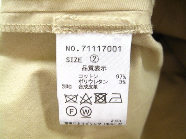 状態は良好で目立つ傷、汚れの少ない中古品。 | ※ 状態は、弊社基準により表記をさせて頂いております。 ※ リユース商品の為、表示しきれないダメージなどある場合もございます。 ※ 実店舗業務の運営上、質問にお時間をいただく場合や主観的なご質問にはお答えできかねる場合がございます。 サイズ | | サイズ : 2 【ウエスト】 : 31.5cm 【ヒップ】 : 65cm 【総丈】 : 89cm すべて平置きでの採寸となっております。 素人採寸ですので、ご参考程度にお願いします。 付属品 | ※ 出品商品はお写真に写るものが全てとなります。 | ※ ハンガー・スタンド等、備品を用いて撮影している場合がございますが、備品は付属いたしません。 店舗名 | 四日市店 | 発送について | ゆうパック、もしくは 佐川急便、ヤマト運輸(選択は出来ません) 元払のみの発送です。管理上その他の発送方法には、対応できません。お問い合わせは、ご遠慮願います。 | お支払いについて | 落札金額 + 消費税 + 送料 のお支払いとなります。 | 送料は送料欄にて、お届け先の都道府県をご選択頂き確認をお願い致します。 ※ 離島など別途追加が必要な場合もございます。 ※【お支払方法】銀行振込・代引きには対応しておりません。 同梱について | ※ 発送の拠点が複数ございます。同梱できない場合は個別配送となりますので、ご容赦下さい。 | ご落札の流れ | ヤフオク!ストアが出品した商品を落札した場合、個人が出品した場合とは取引方法が異なります。また、ストアとの取引では商品受け取り後の受け取り連絡は必要ありません。 | >> ヤフオク! リンクはコチラ ご注意事項 | お写真は撮影時の状態です。 | 店頭にて併売しているお品はコンディションが変わる場合もございます。 購入時に著しくコンディションが変わってしまっている場合はご連絡いただければ真摯に対応致します。 お色・状態に関しては、モニター環境や、太陽光・室内ライトなどの環境により、見え方が違う事もございますので、ご理解頂ければ幸いです。 中古品ですのでノークレームノーリターンでお願い致します。 材質タグがある場合は、写真撮影しておりますので そちらでご確認願います。 他店舗でも同時に販売しておりますので、売り切れの際は ご容赦頂ければ幸いです。 |