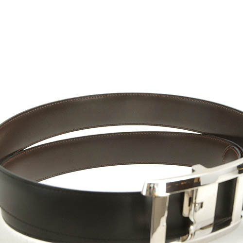 タンク ウォッチのアイコニックなレクタンギュラーシェイプからインスパイアを受けた、スタライズド ベルトバックルのコレクション。 ブラック×ブラウンのコンビカラーとなっており、装いに合わせてリバーシブルでお使い頂けます。 ブラウンは、チョコレートの様な色をした、チョコレートブラウンと言った様なお色です。 シンプルなデザインと品の良いたたずまい。 着こなしのアクセントにどうぞ。 長さカット可能。 |