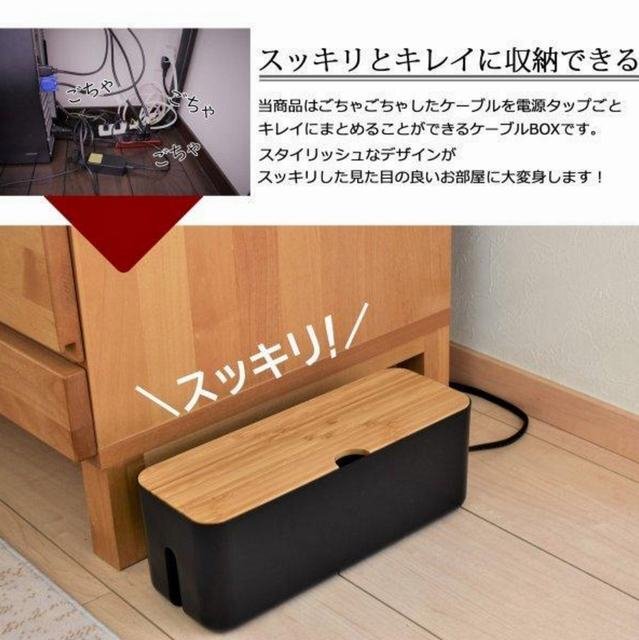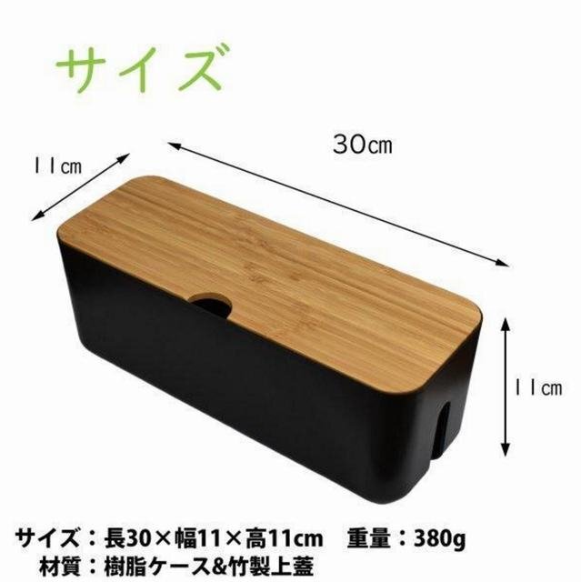 ●商品外寸:幅30×奥行11×高さ11cm ●内寸:幅29.5×奥行10.5×高さ10.5 ※サイズの誤差は多少発生します。ご了承下さい。 ●最大サイズ:290mmのタップを収納可能 ●素材:本体:プラスチック 蓋:竹 ●耐火ABS樹脂を使用し、温度抑え、防火機能も優れるため、ご安心に使用できます。 ●小型電源タップ(長さ29cmまでのタップ)、配線などをすっきり収納できます。 ●蓋にケーブル穴が付いて取り出しは便利です、プラスチック製なので、汚れなども簡単に拭き取りでき、洗うことも可能です。 ●リビングのテレビラックなど人目に付く場所に設置しても雰囲気を損なわないスタイリッシュデザインです。