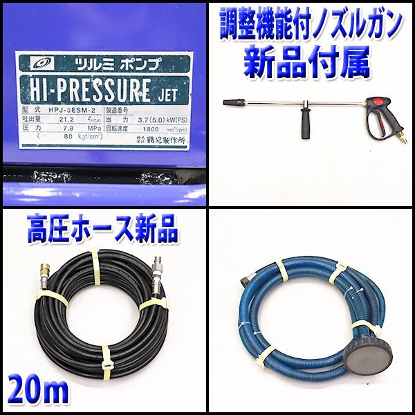 高圧洗浄機 ツルミ HPJ-5ESM-2 エンジン ハイウォッシャー ガン・高圧ホース新品 ガソリン 建設機械 整備済 福岡発 売切り 中古 10R20