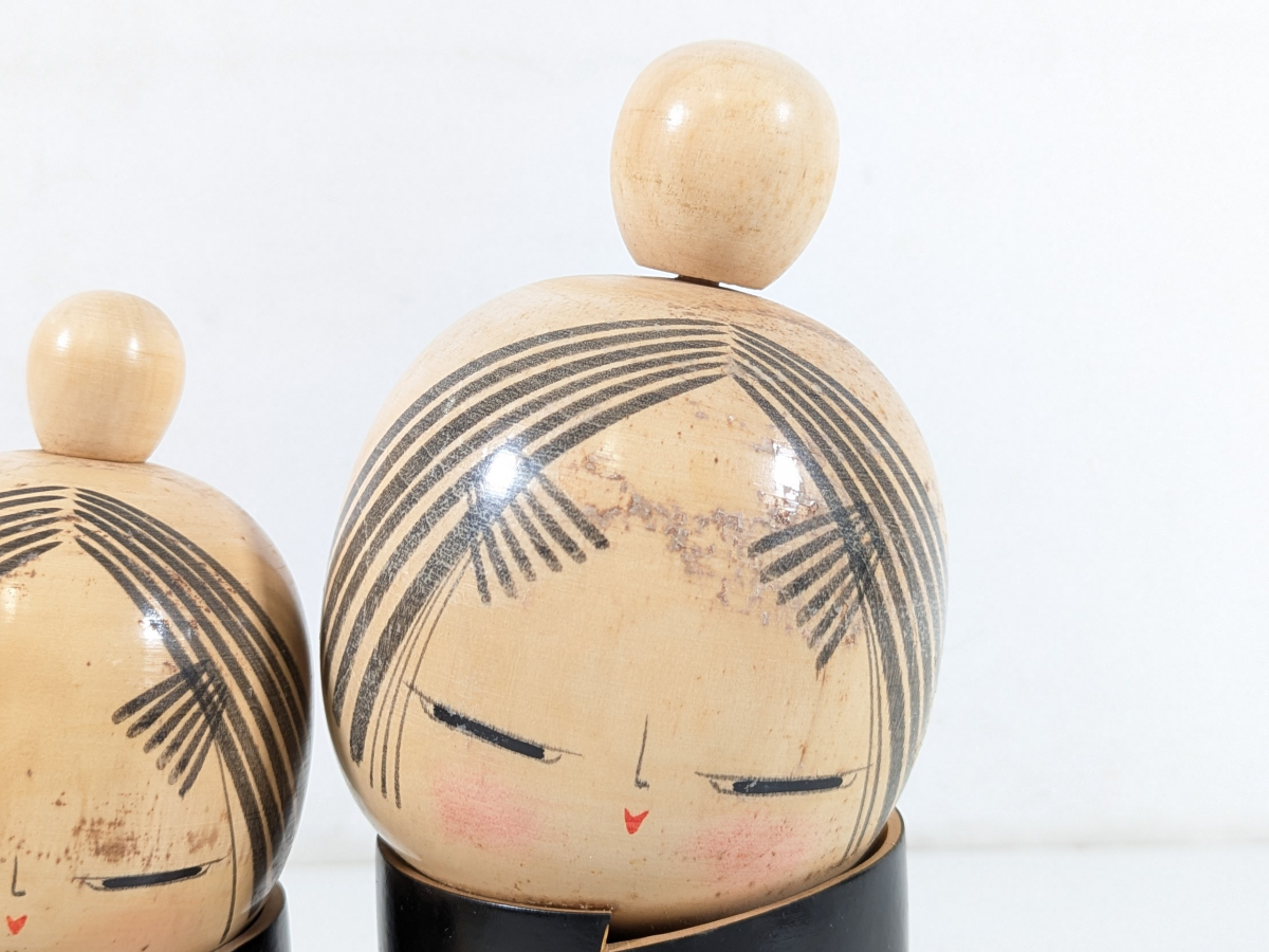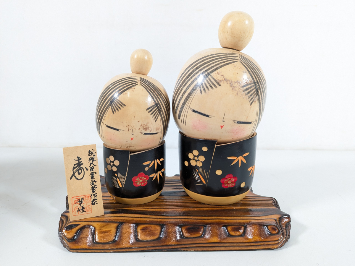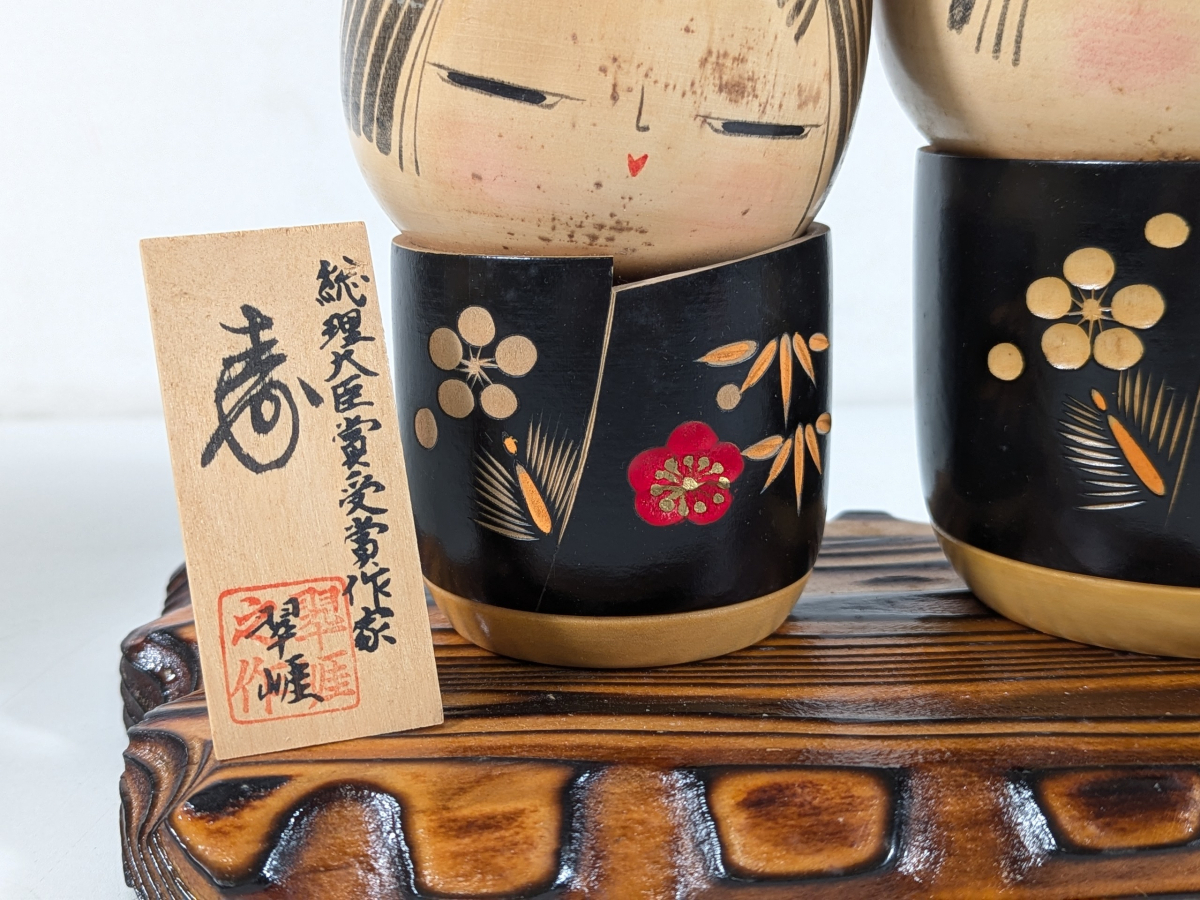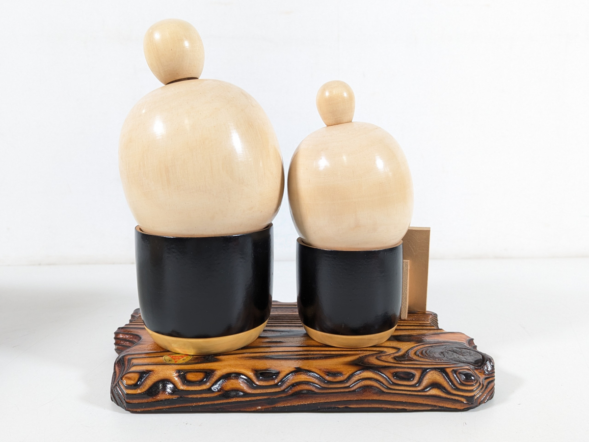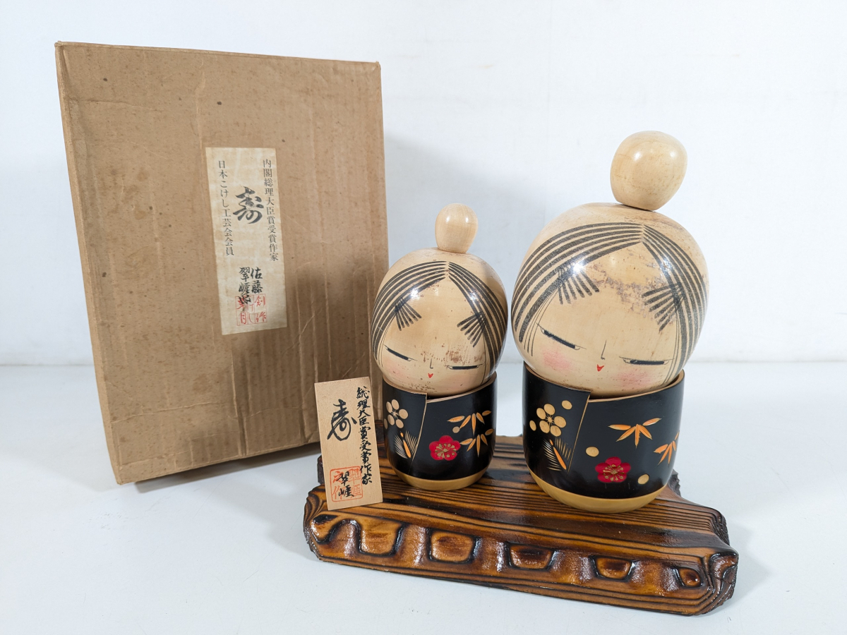 | 商品説明 | ★最後までお読みいただき、ご理解の上でのご入札をよろしくお願いいたします。 【JS006】 ■創作こけし 佐藤翠崕 「寿」近代こけし 二体セット 木製台付き 箱付き 翠崕 木製人形_SJL_C1126-J01D