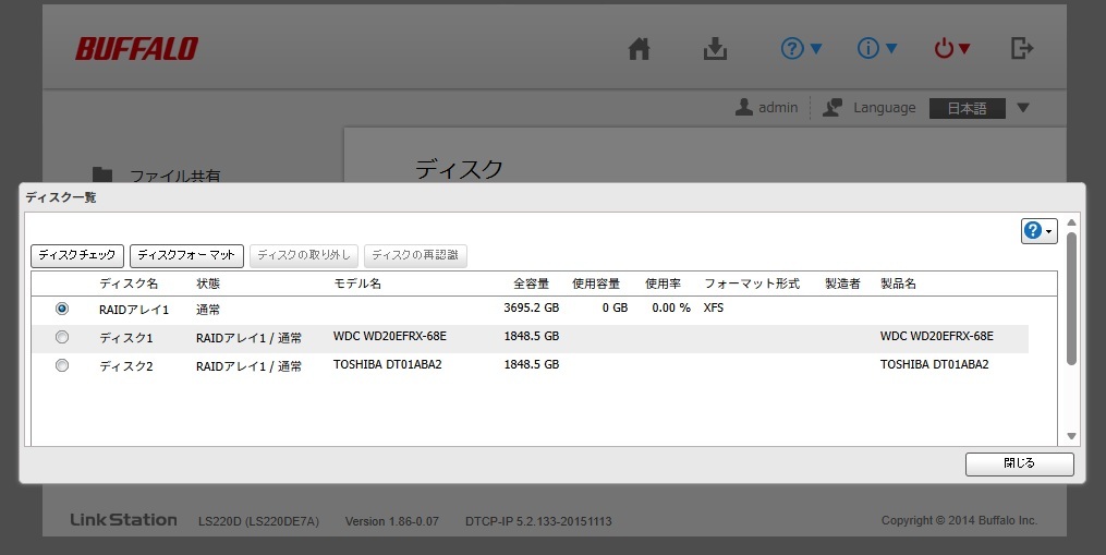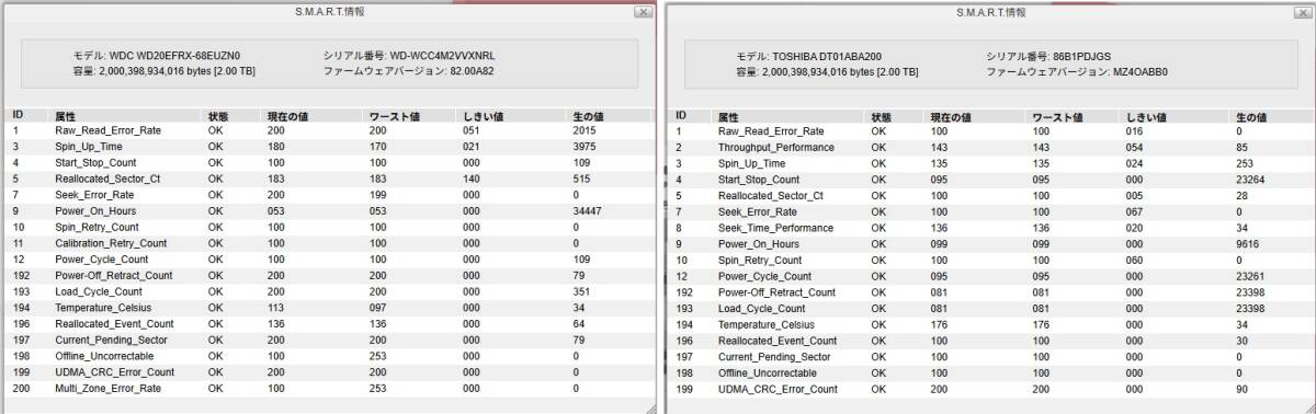 HDDの状態はS.M.A.R.T情報でOKを確認してあります