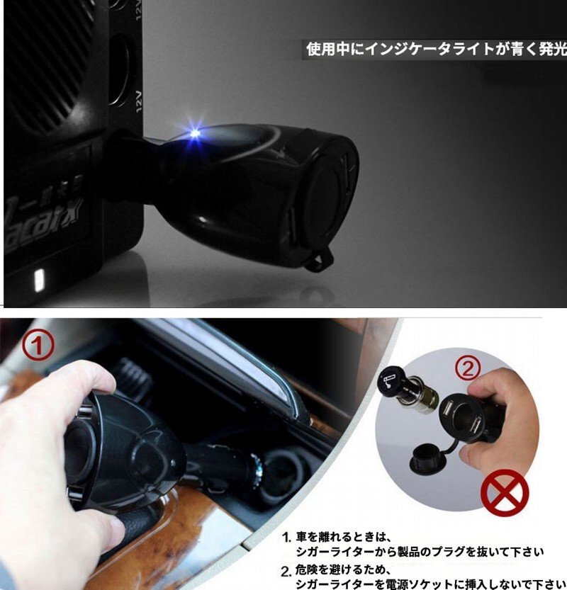 | シガーソケット USB2ポート+1ソケット カーチャージャー ブラック |