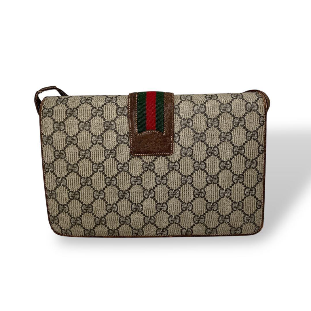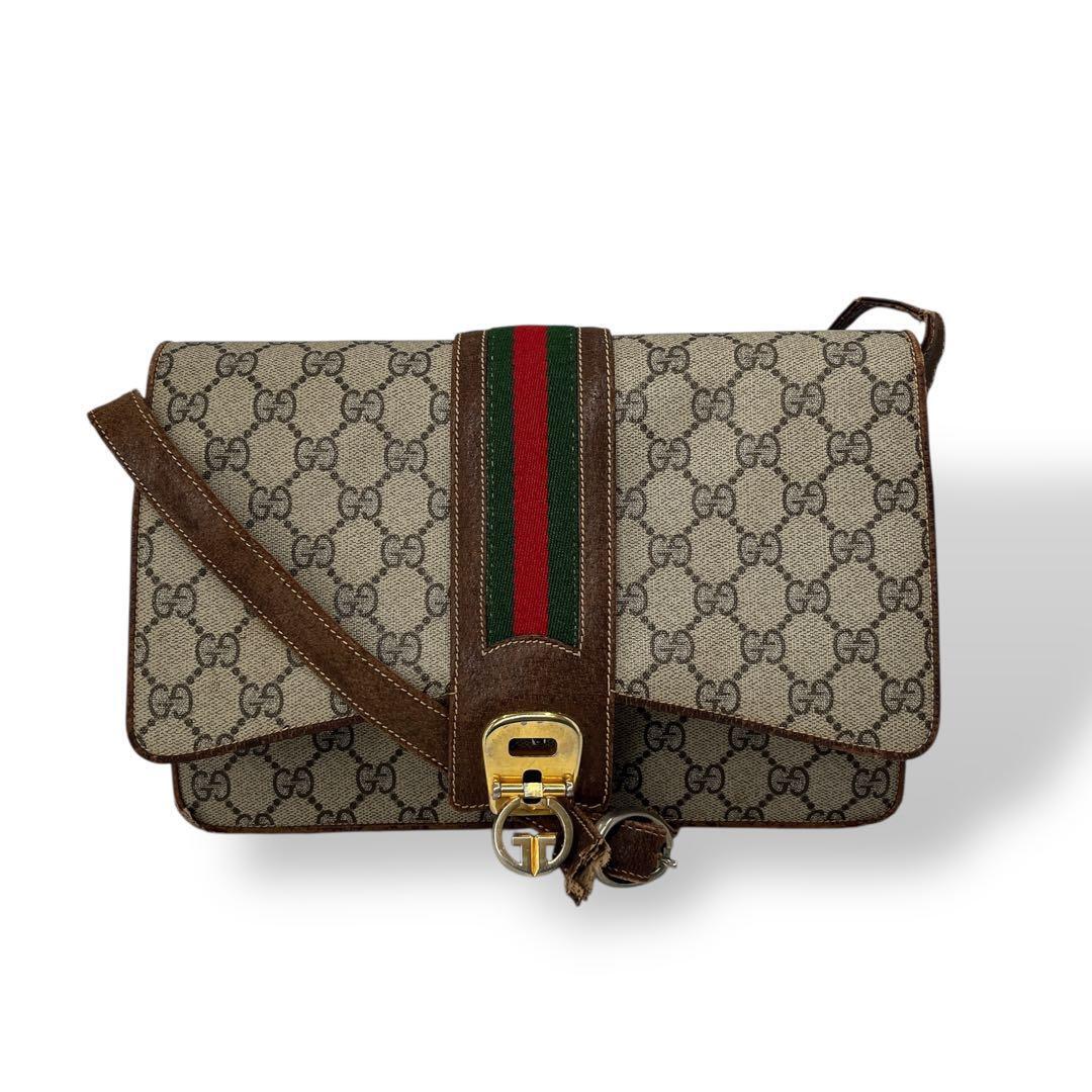 OLD GUCCI カメラバッグ ベージュ ブラウン ゴールド金具 フラップ GG柄 ビンテージ ヴィンテージ