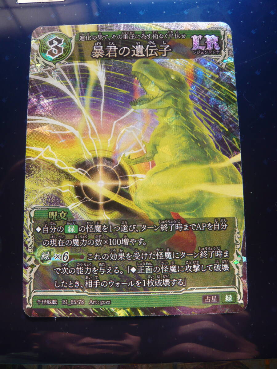 千怪戦戯 第1弾 三界の宣戦 【暴君の遺伝子】 LR (レジェンドレア) & [オークの戦士] R & [シンバクブワ、朝焼けの果し合い、水竜の尖角] N