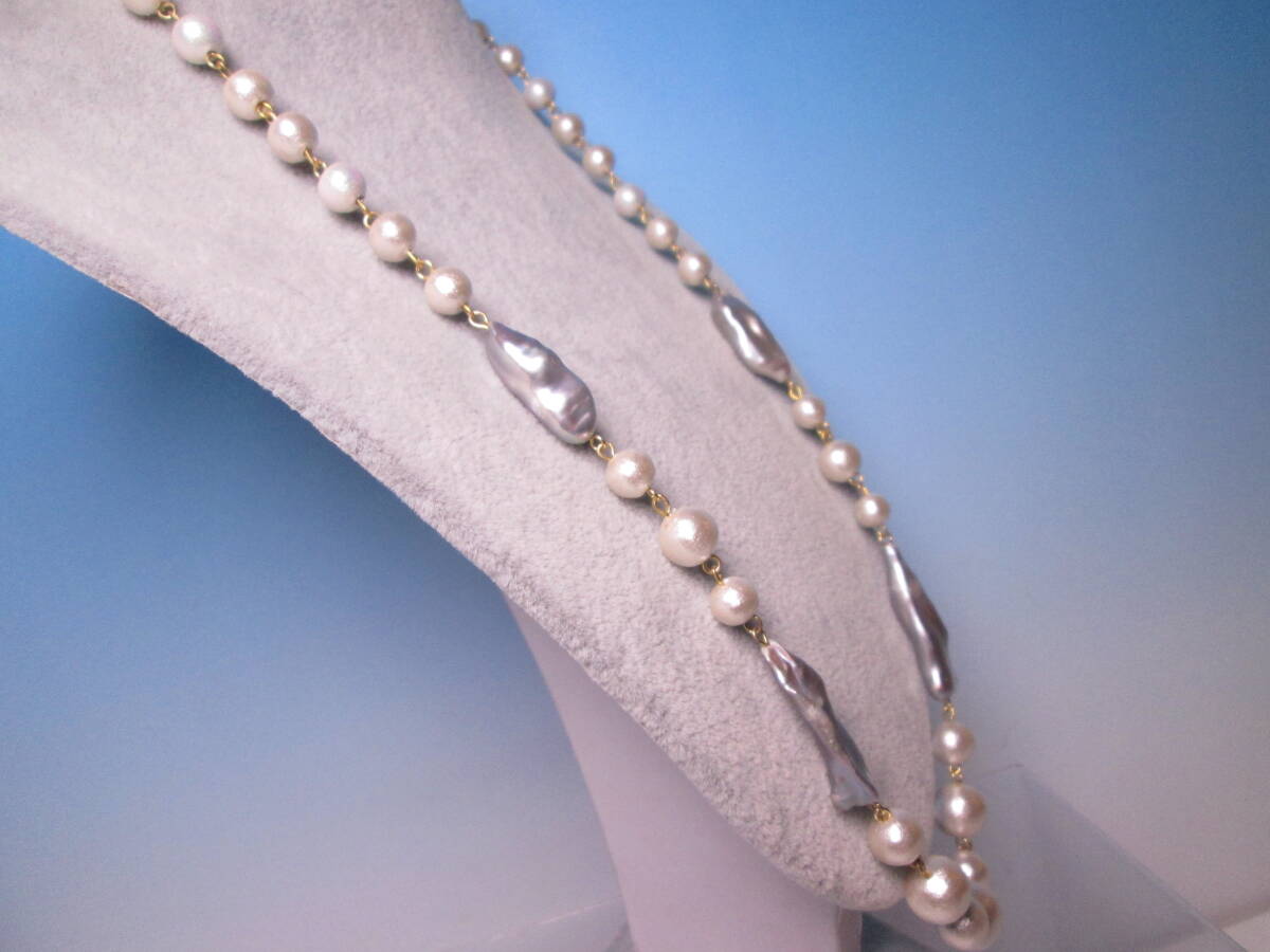 ☆本真珠 バロックパールのデザインロングネックレス 26,81g パーティー/コスチュームジュエリー