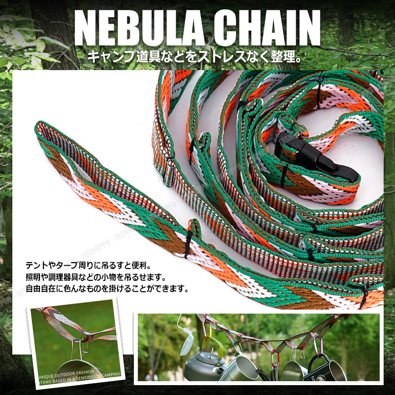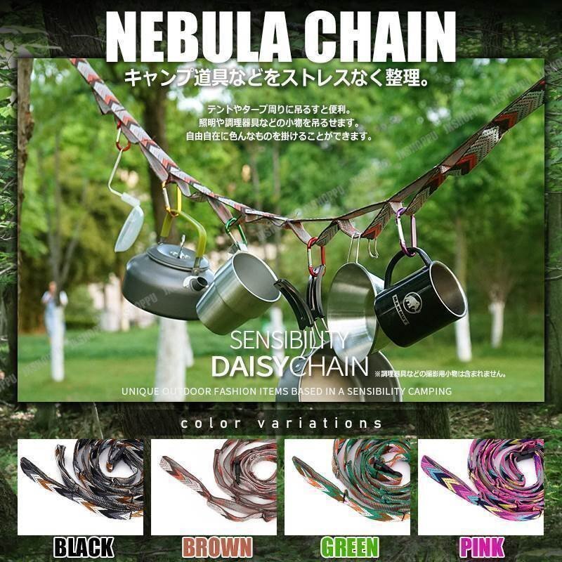 送料0円 かわいいキャンプ用品 ネビュラチェーン [グリーン] 収納袋 テント タープ ハンギングチェーン 紐 ひも デイジー ロープ 迷彩