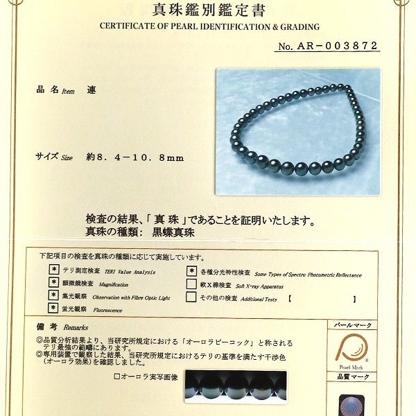 黒蝶真珠(オーロラピーコック) 約8.4-10.8mm