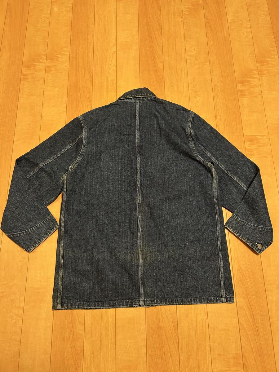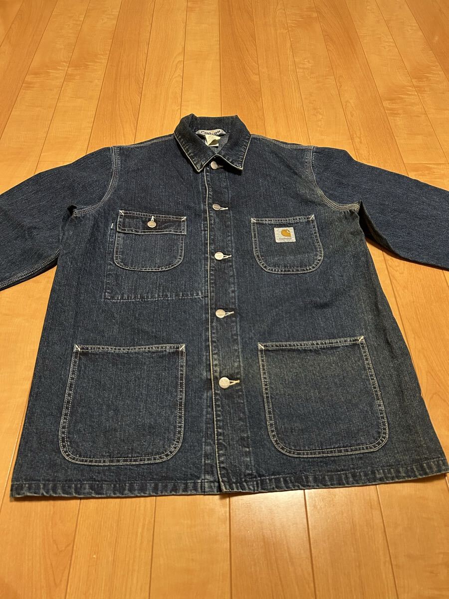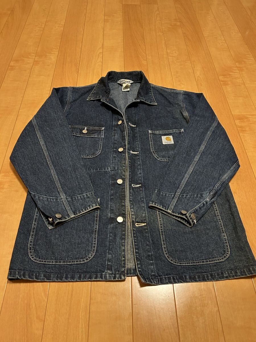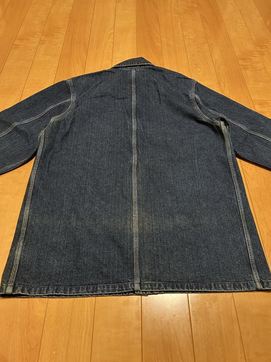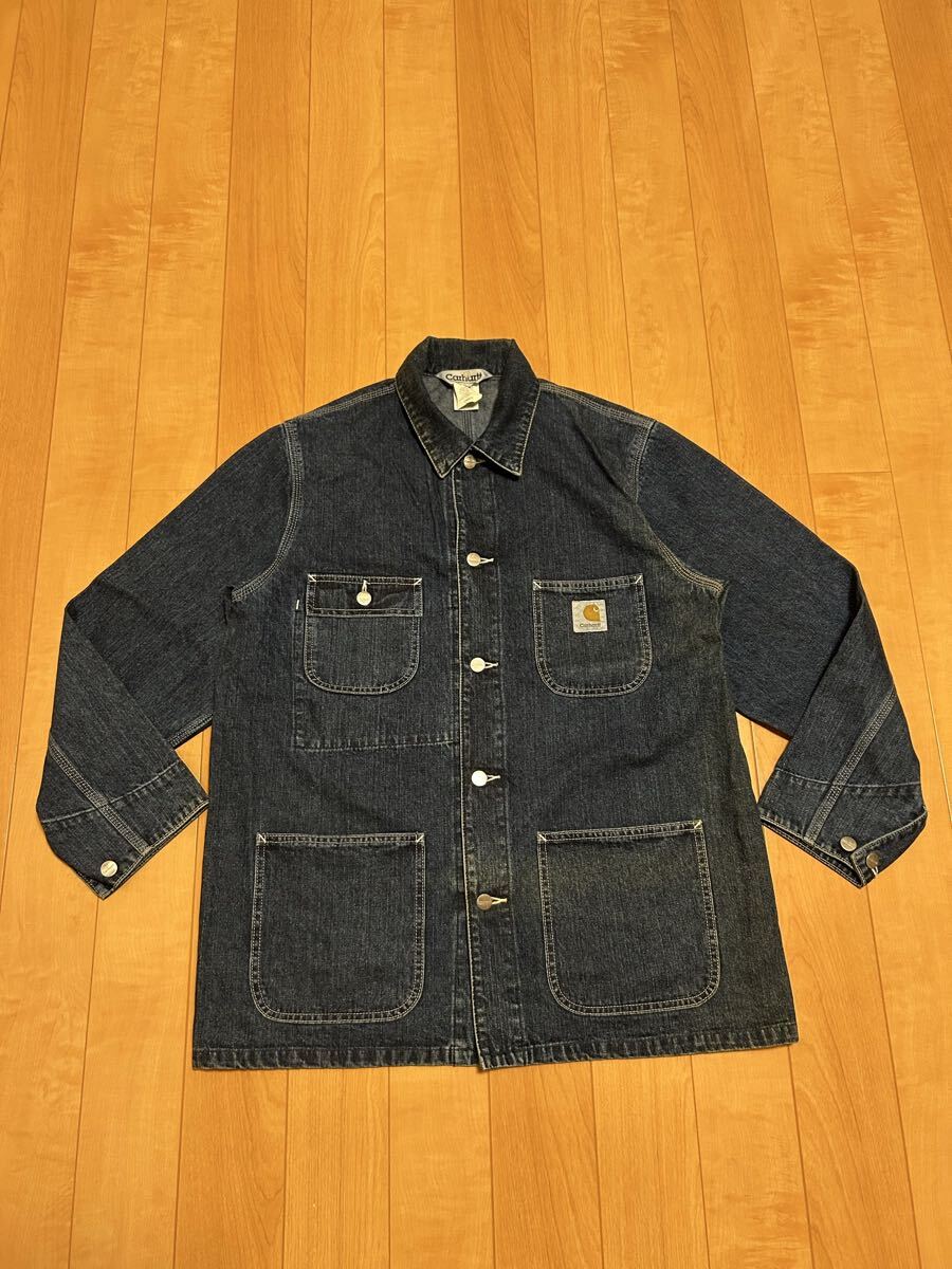 当時物.良品☆2000s〜カーハート サイズL大き目 濃紺インディゴデニム.カバーオール・ワークジャケット 3本針白ステッチ ビンテージ OLD!