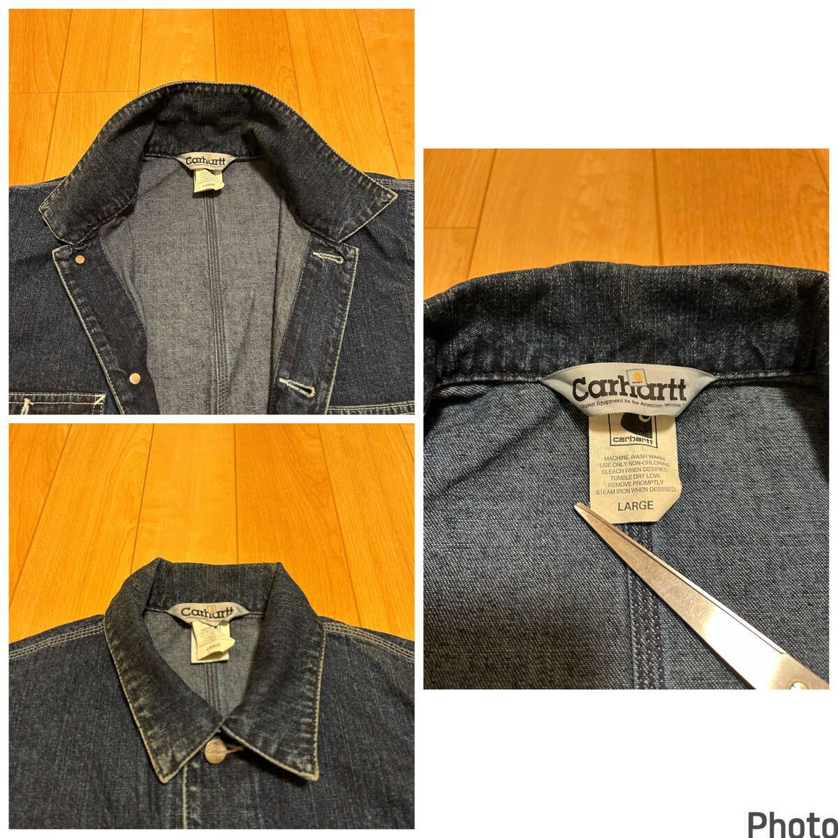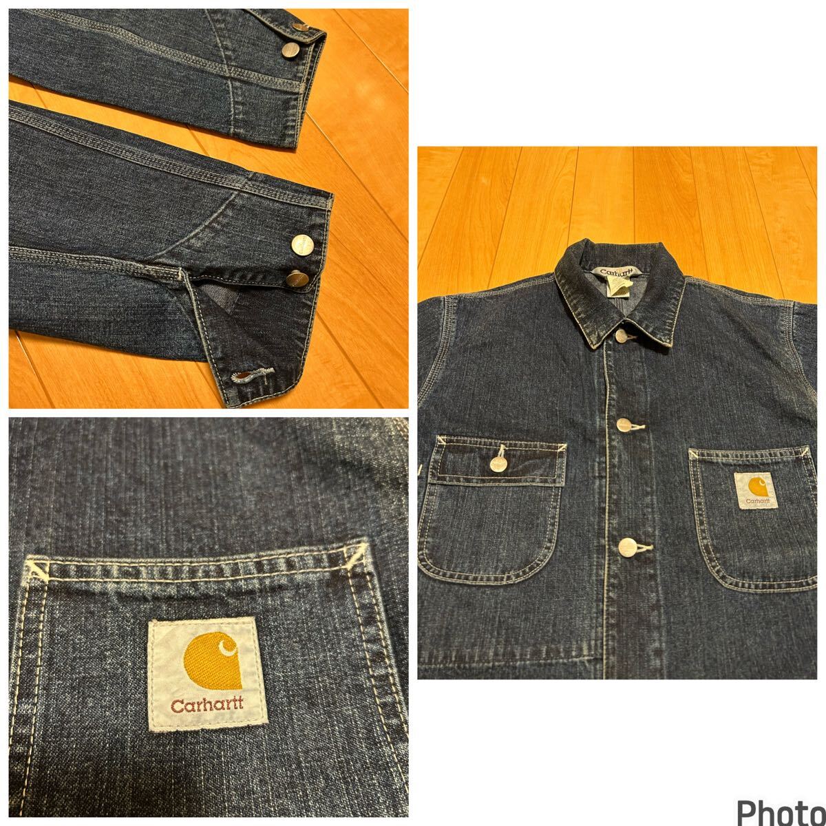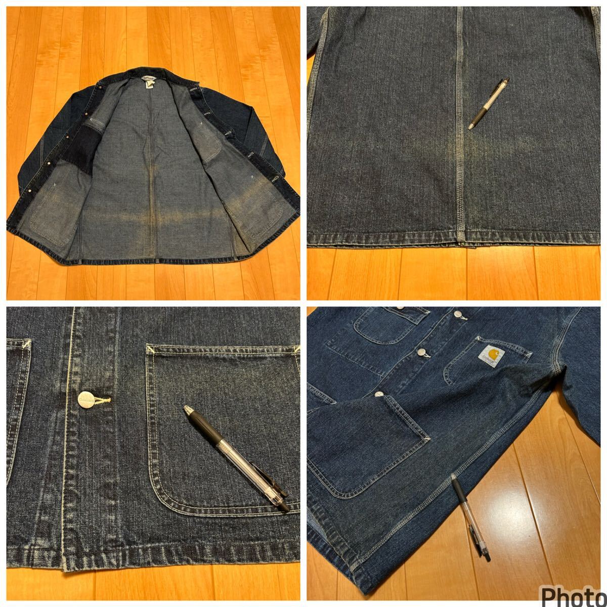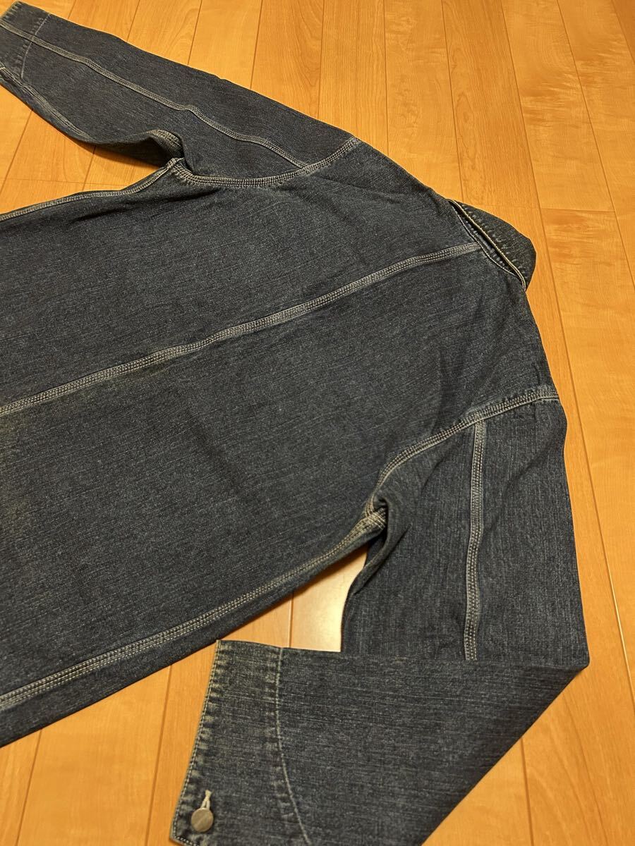 当時物.良品☆2000s〜カーハート サイズL大き目 濃紺インディゴデニム.カバーオール・ワークジャケット 3本針白ステッチ ビンテージ OLD!