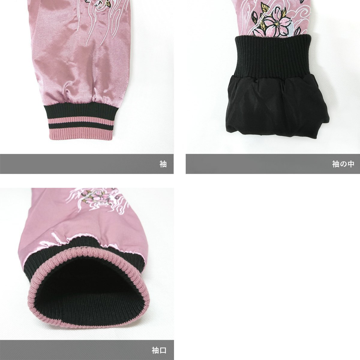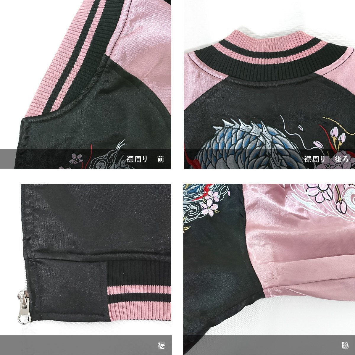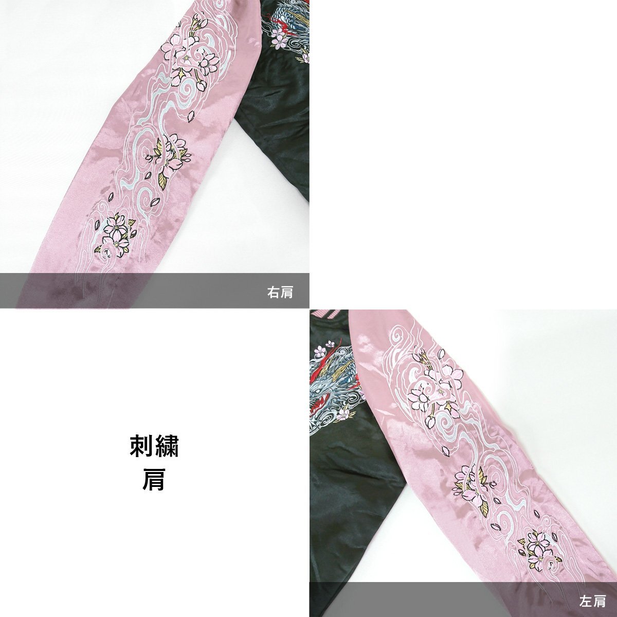 【C00249-2】スカジャン 龍 桜 ピンク M 刺繍 柄 ジャンパー 上着 アウター バイカーズ ジャケット