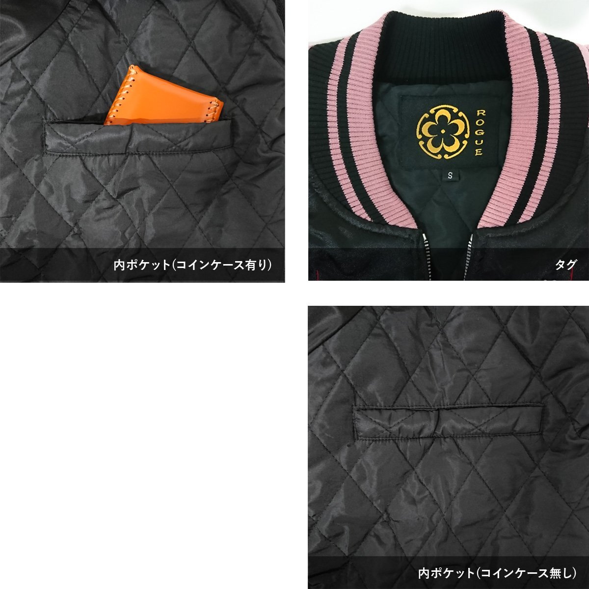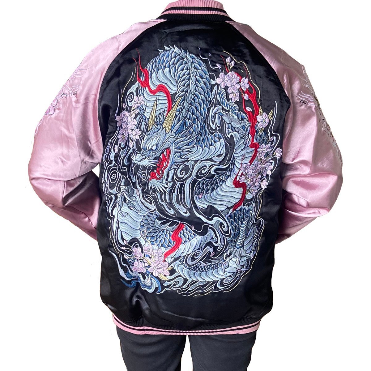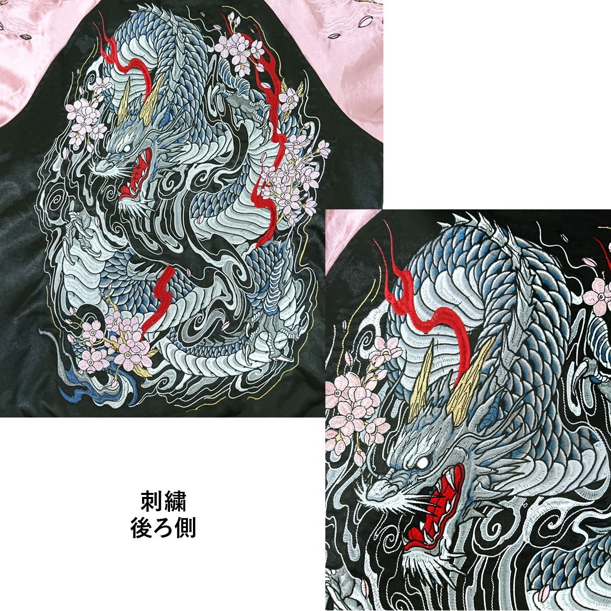 【C00249-2】スカジャン 龍 桜 ピンク M 刺繍 柄 ジャンパー 上着 アウター バイカーズ ジャケット