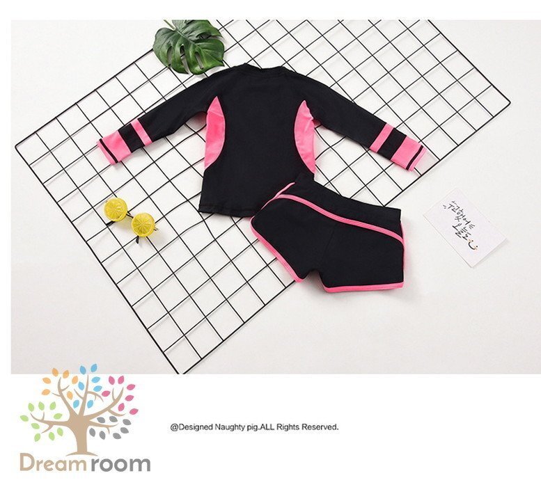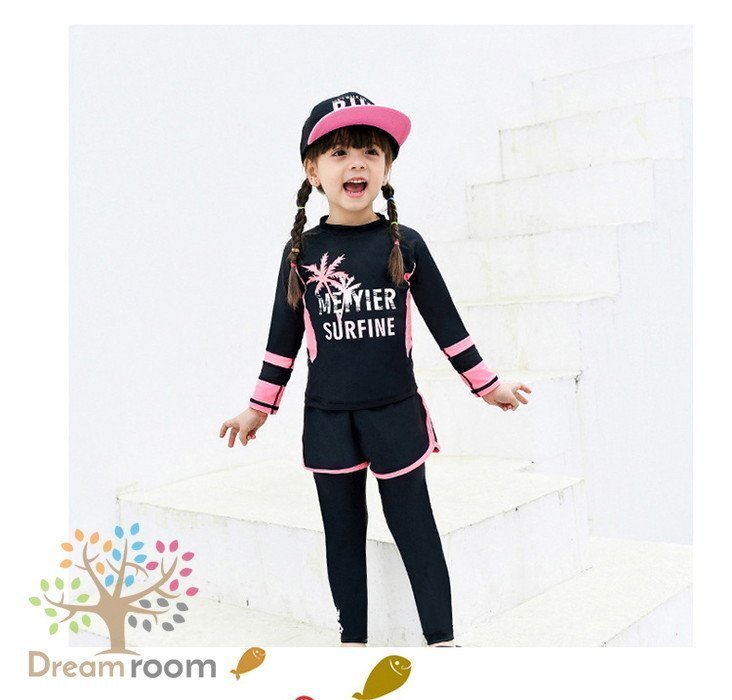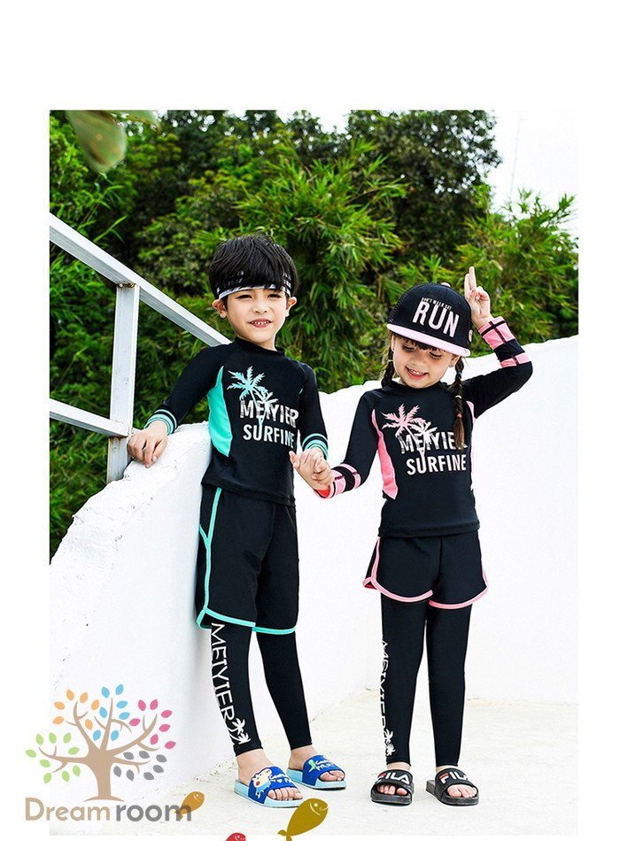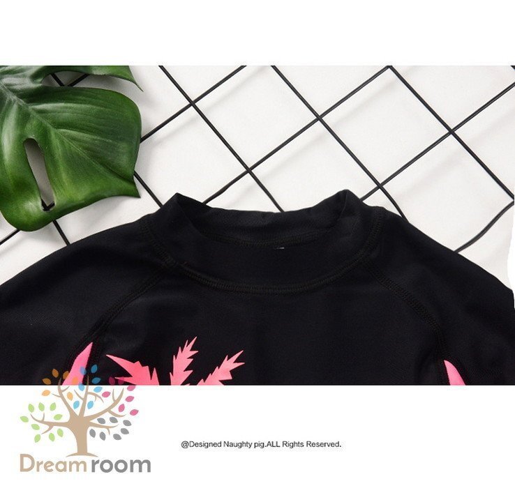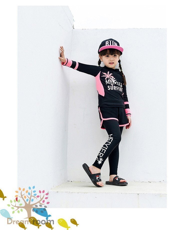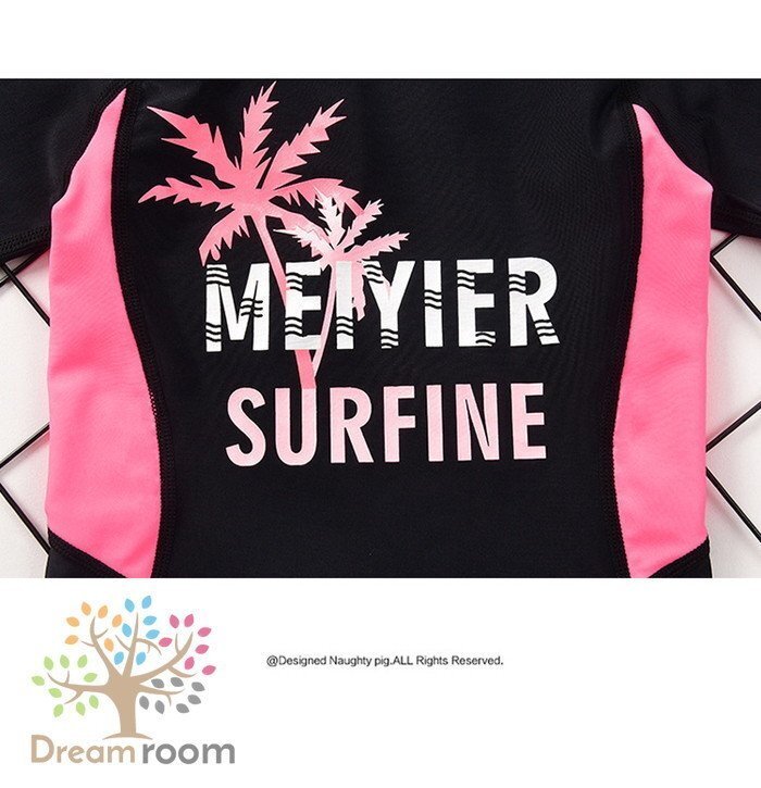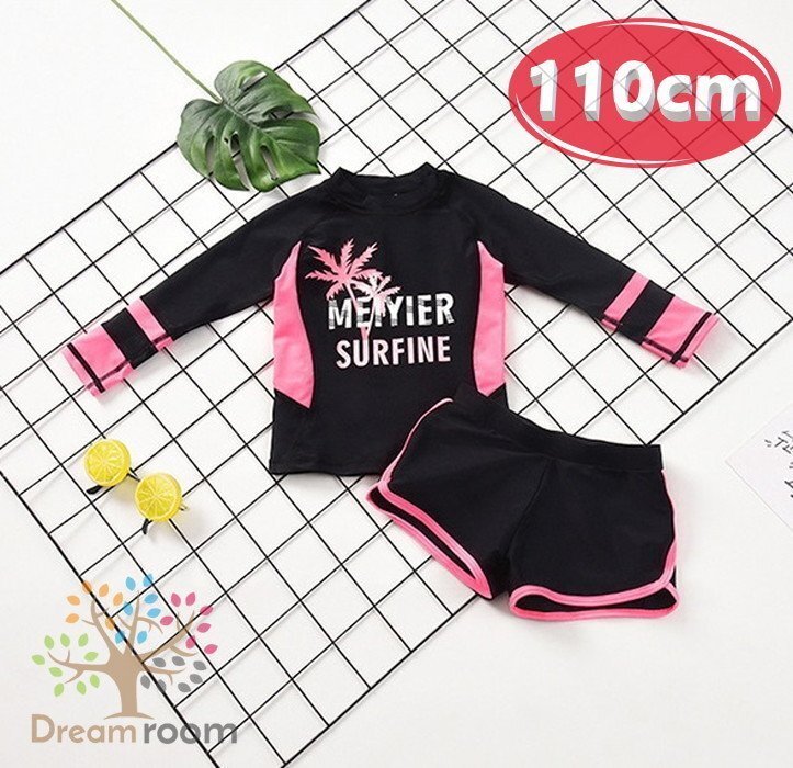 kids 2点セット リゾートヤシの木柄 ピンク ラッシュガード+海水パンツ セットアップ女の子 【110cm】 K-237 スイムウェアー