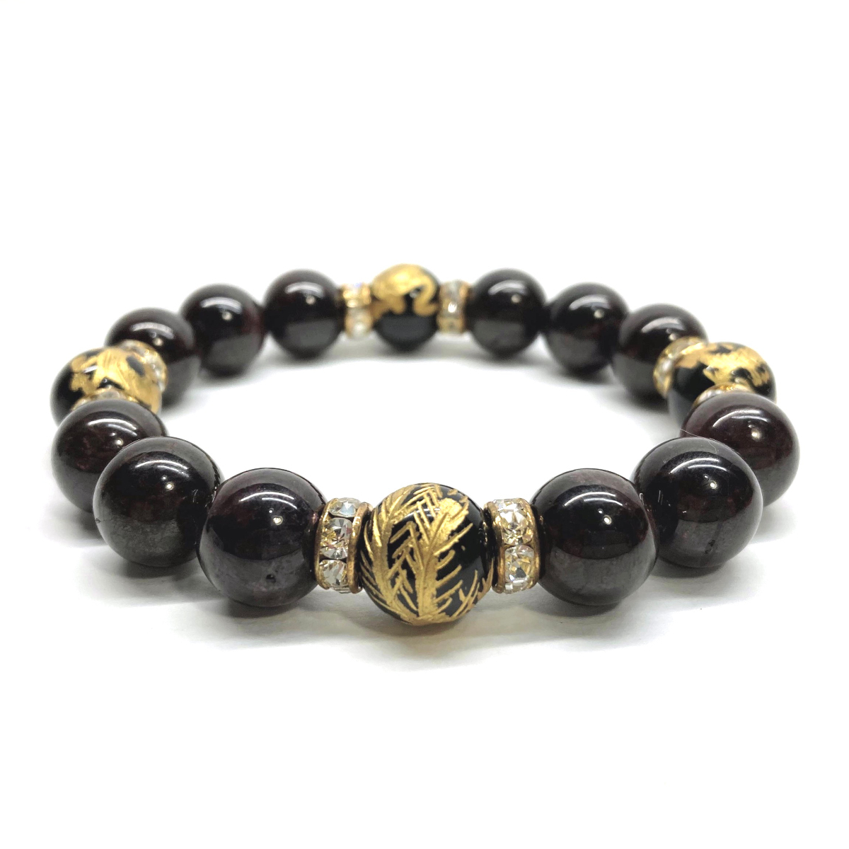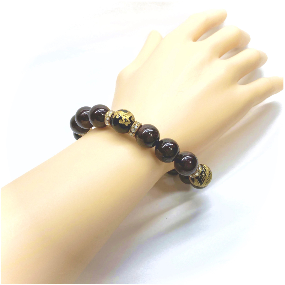 こちらは、四神獣金彫オニキとガーネットを組み合わせたパワーストーンブレスレットです。四神獣は、中国の伝説で4つの方向(東西南北)を守護する神聖な神。四神獣、厄災から身を守り、多くの運気を呼び込むと言われております。石大きさは程よくインパクトのある12mm玉で内周 約17cmです。 数に限りがございますので気になる方はお早めにどうぞ。
