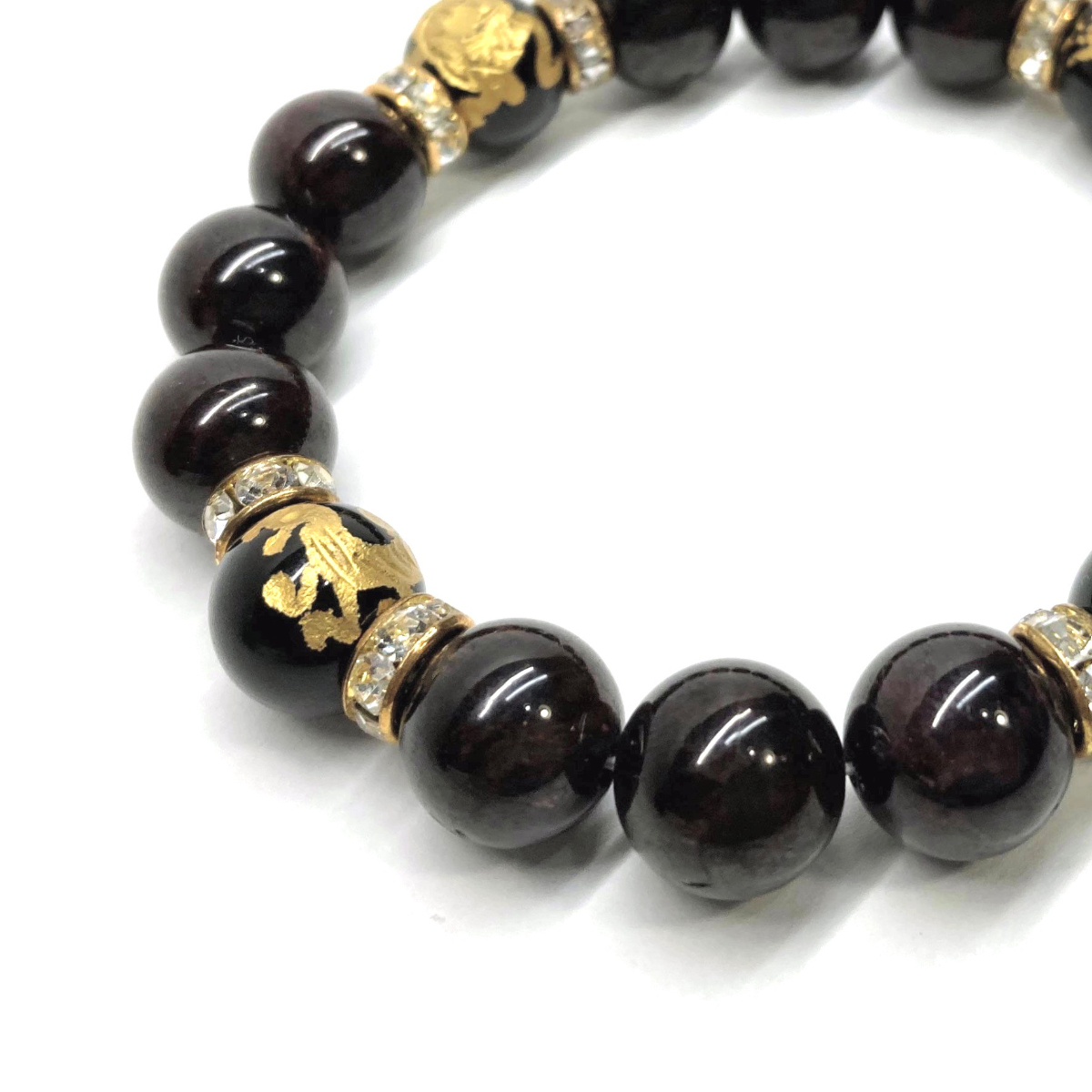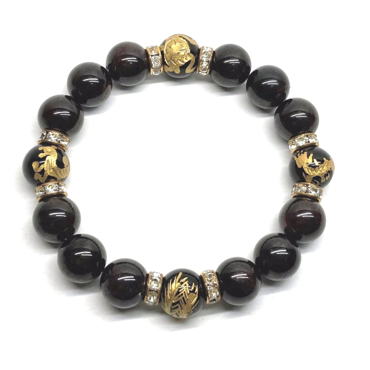 四神獣金彫オニキス×ガーネット 12mm パワーストーン ブレスレット天然石 青龍 白虎 玄武 朱雀 運気上昇 開運 金運 お守り 四神相応 G
