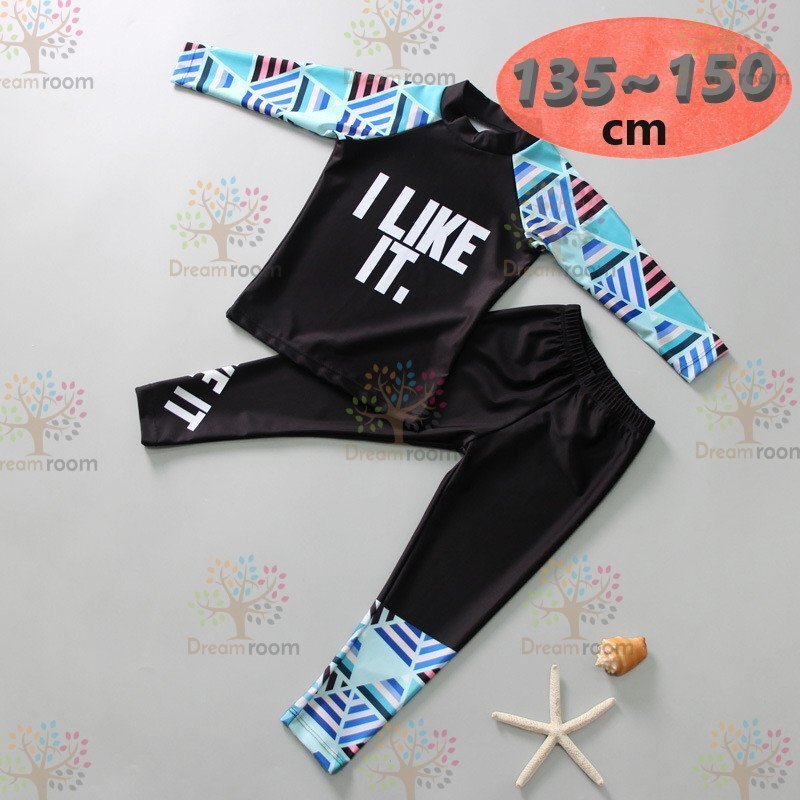 1スタ☆ラッシュガード セパレート水着 上下セットアップ ブルー【4XL】135-150cm 子供服 男女 レギンス 長袖 ズボン 日よけ ビキニ 海 プール swi-111
