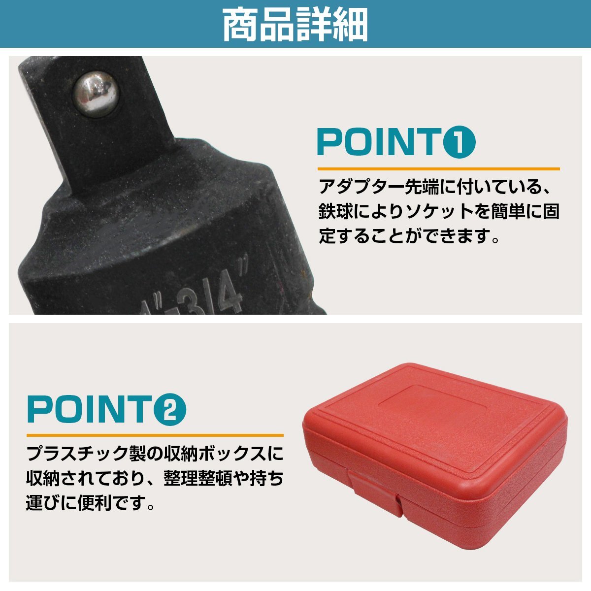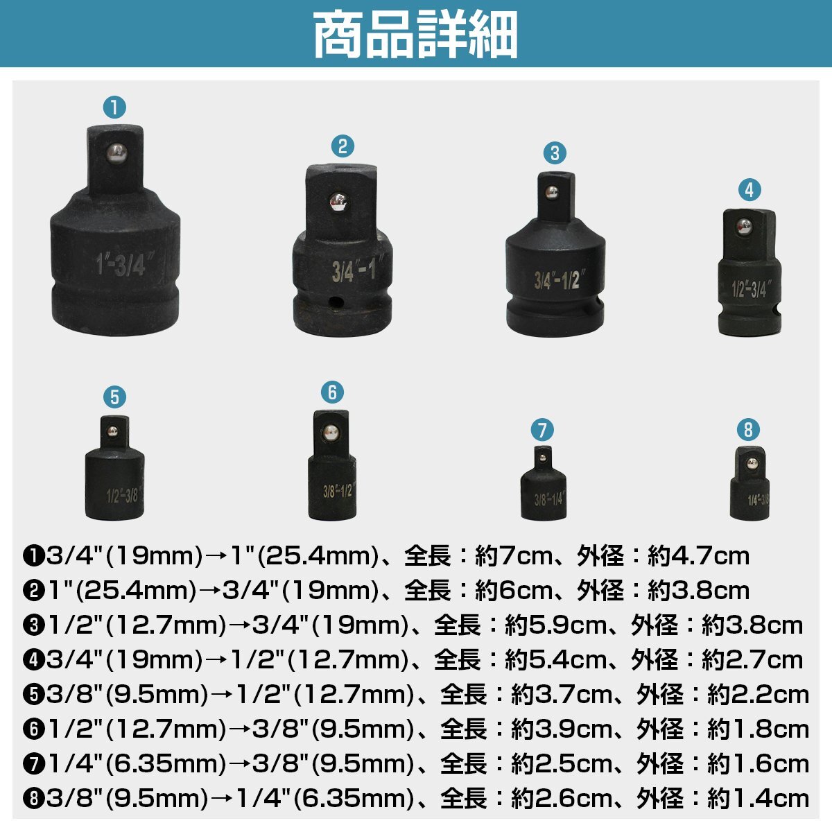 商 品 説 明差込角サイズを変換できるインパクトレンチ対応のソケットアダプターセットです。