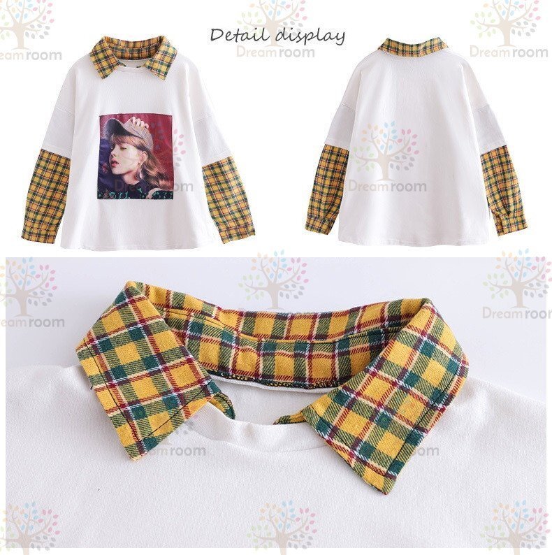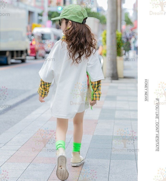 kids タータンチェック シャツ重ね着風 トップス 【110cm】ホワイト 女の子 ロンT 学生 秋服 長袖 K-418bk