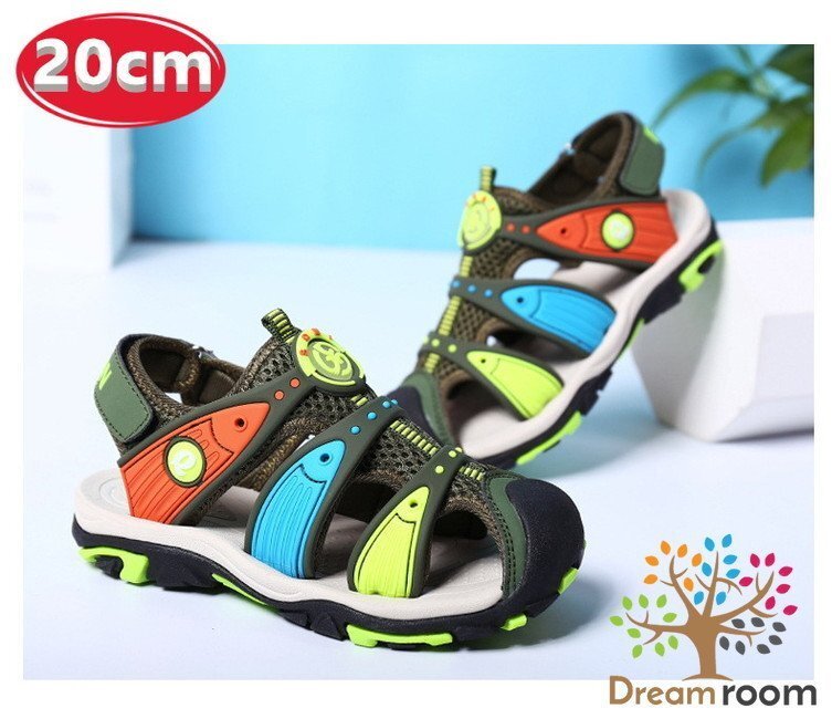 1スタ☆Rainbow クッションサンダル 【グリーンライン 20cm】 マリン 海 川 キッズ シューズ ビーチサンダル 子供用 男女
