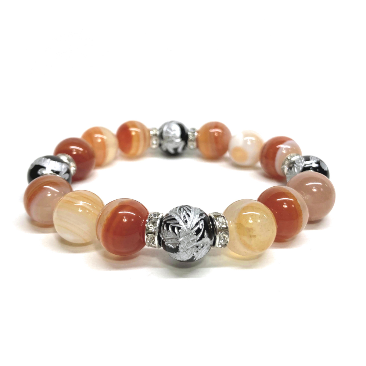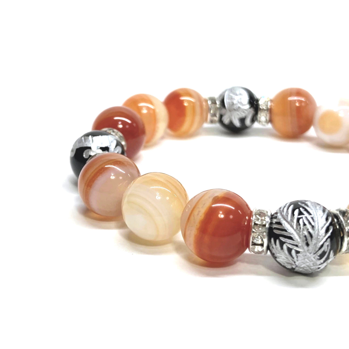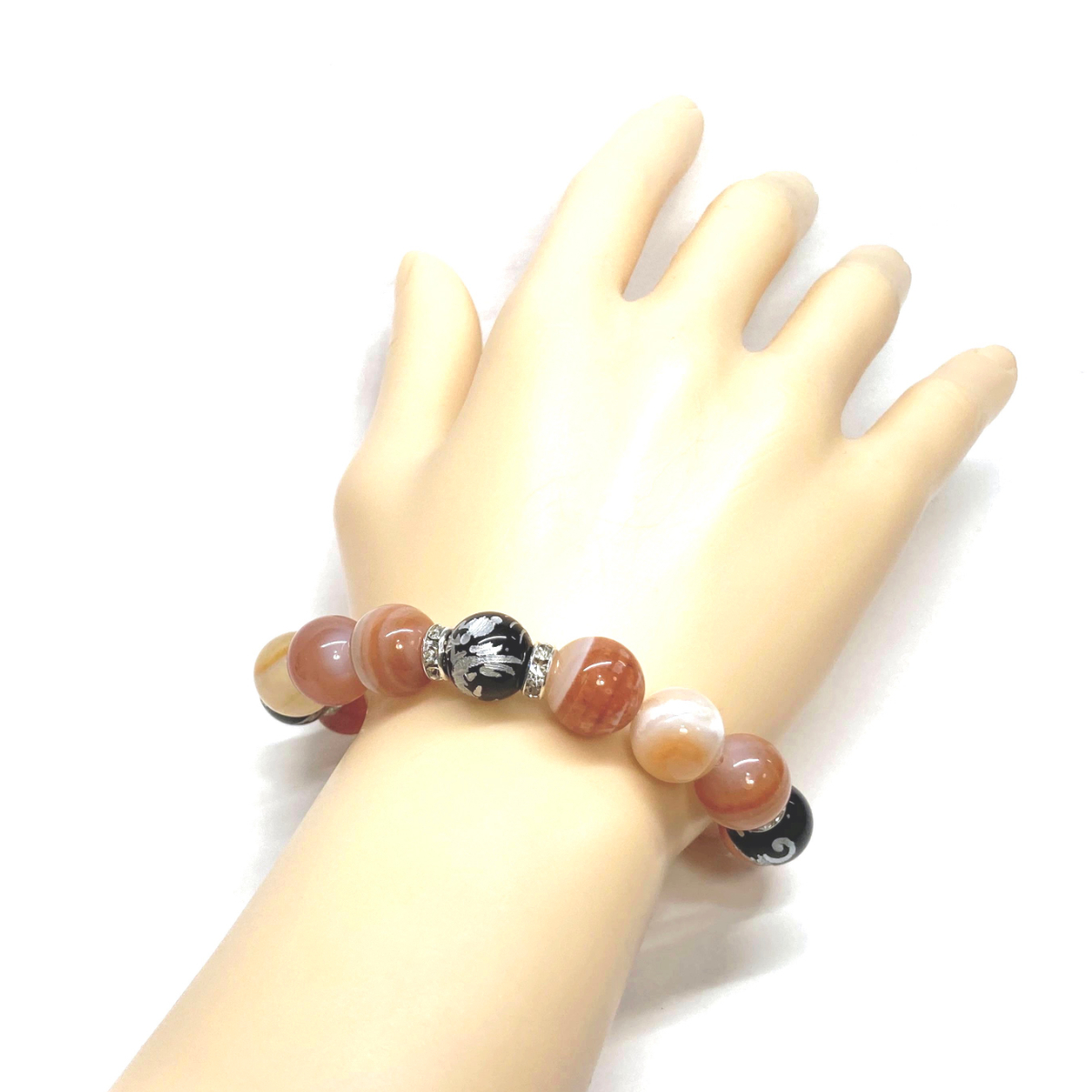 こちらは、四神獣銀彫オニキとカーネリアン・サードニクス(サードオニキス)を組み合わせたパワーストーンブレスレットです。四神獣は、中国の伝説で4つの方向(東西南北)を守護する神聖な神。四神獣、厄災から身を守り、多くの運気を呼び込むと言われております。石大きさは程よくインパクトのある12mm玉で内周 約17cmです。 数に限りがございますので気になる方はお早めにどうぞ。