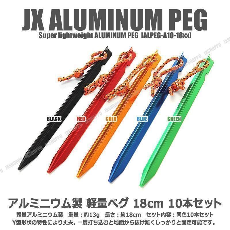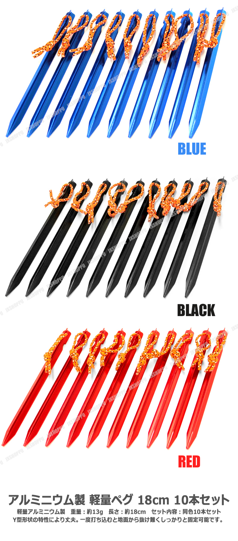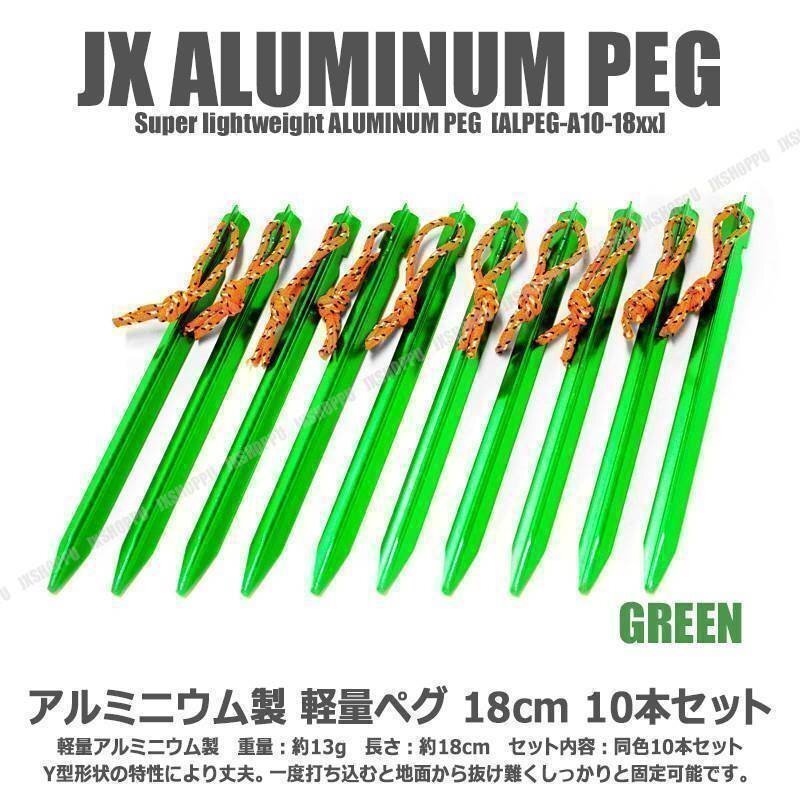 送料0円 Y型 テント ペグ 18cm [グリーン] 10本セット 軽量 ジュラルミン製 アルミニウム アルマイト 紐付属 アウトドア キャンプ用品