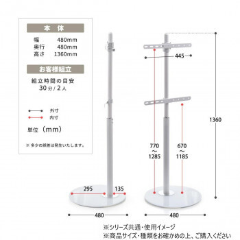 | サイズ | 幅480×奥行480×高さ1360mm 個装サイズ:75×56×11cm |
