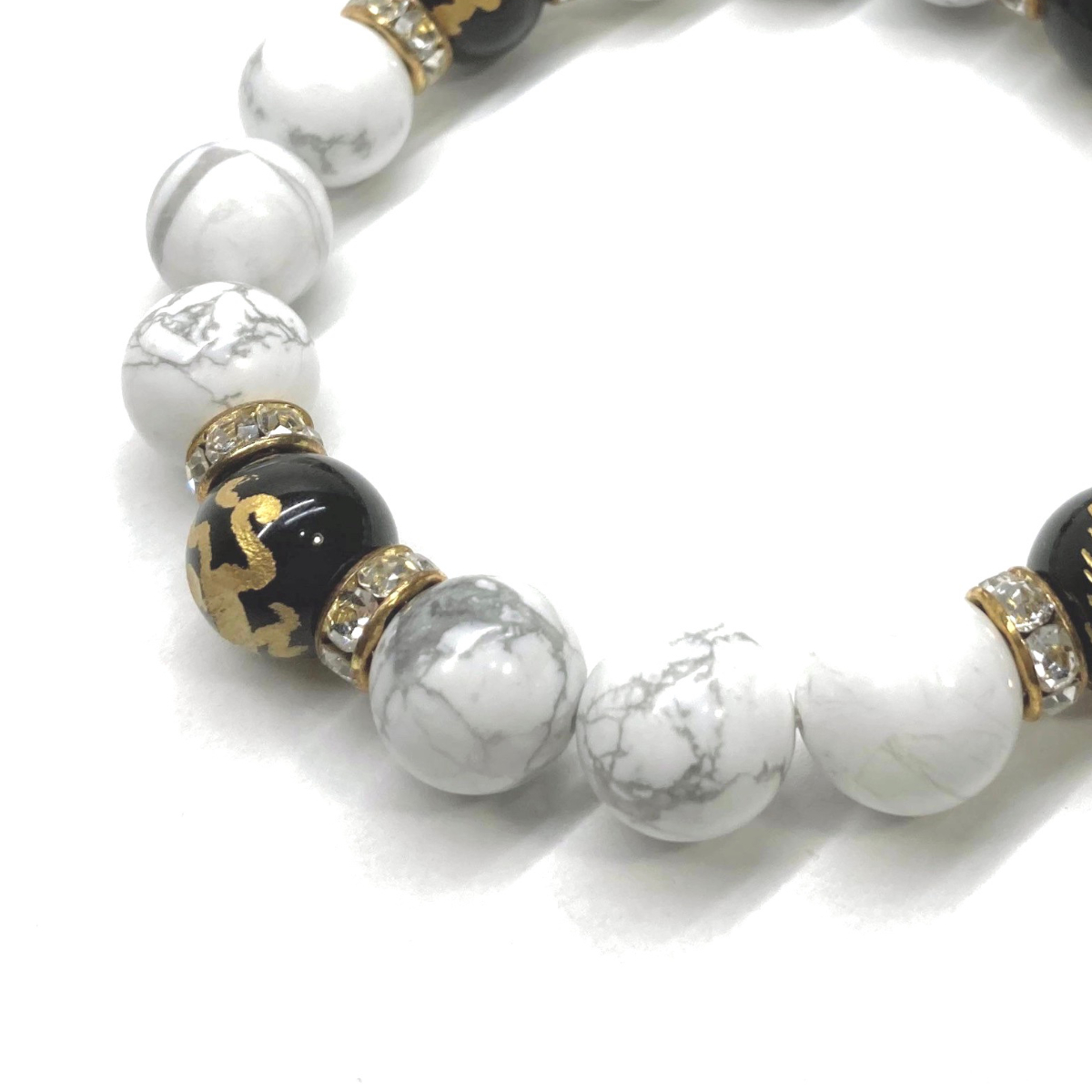 四神獣金彫オニキス×ハウライト 12mm パワーストーン ブレスレット天然石 青龍 白虎 玄武 朱雀 運気上昇 開運 金運 お守り 四神相応 G