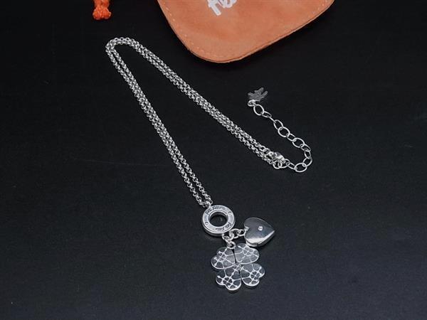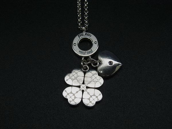 ■美品■ Folli Follie フォリフォリ ハート クローバー ラインストーン ネックレス ペンダント アクセサリー シルバー系 DJ4212