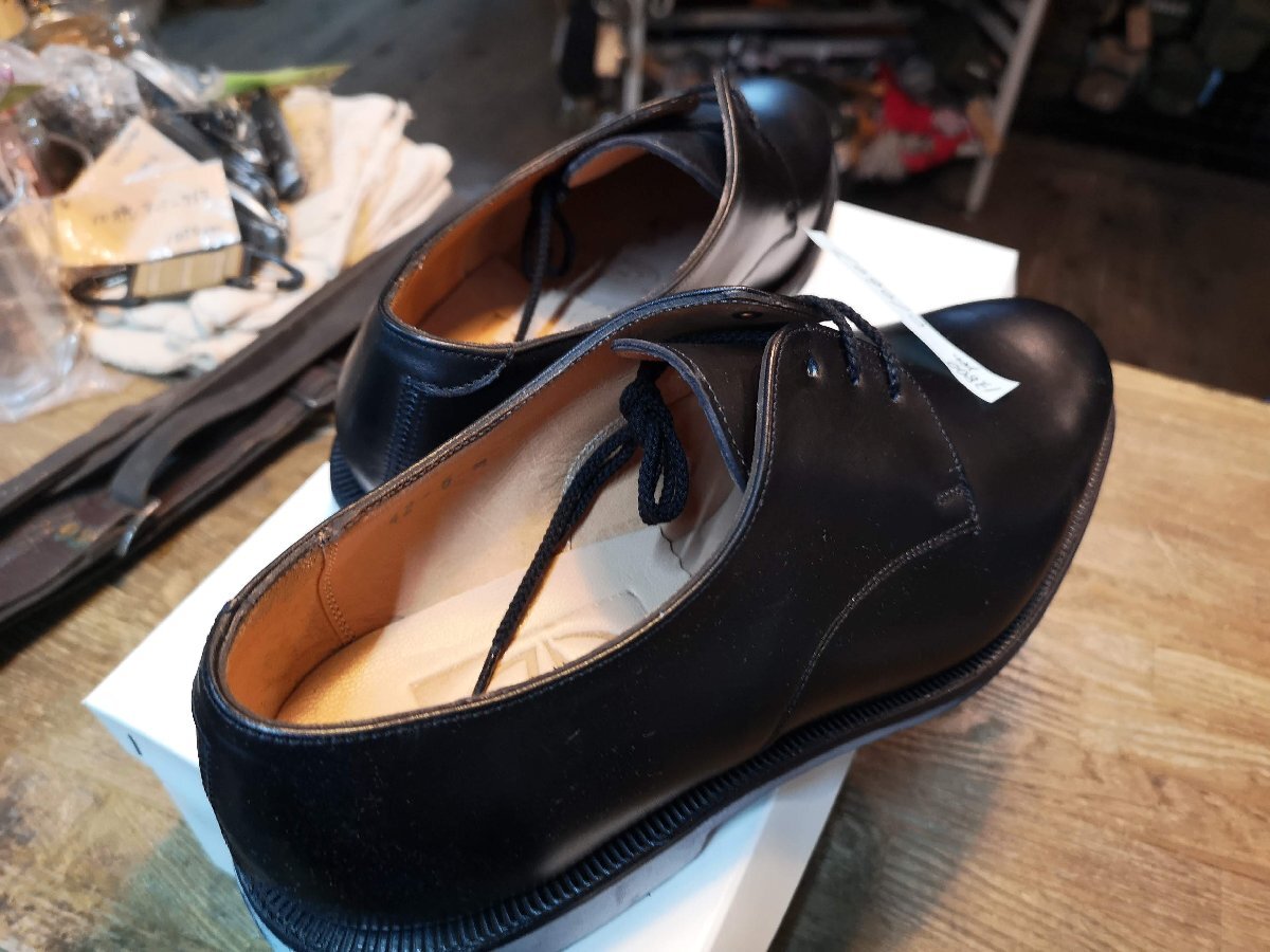 フランス軍で供給されていたサービス(オフィサー)シューズです。 2000年以降に製造されたアイテムです。 レザーシューズとしてオーソドックスで癖のない外羽根式のプレーントゥ仕様、ややマットな質感が使用されています。 ソールはラバーソールでグリップにも優れ歩きやすく、高い品質で仕上げられたフランス製のシューズです。 カジュアルスタイルからドレススタイルまで幅広く合わせて頂けるデザインです。 サイズ:42(26.5cm) 素材:レザー 状態:デッドストック 沖縄離島を除く全国元払い500円にてお送りいたします、落札価格にプラスでお願いします。