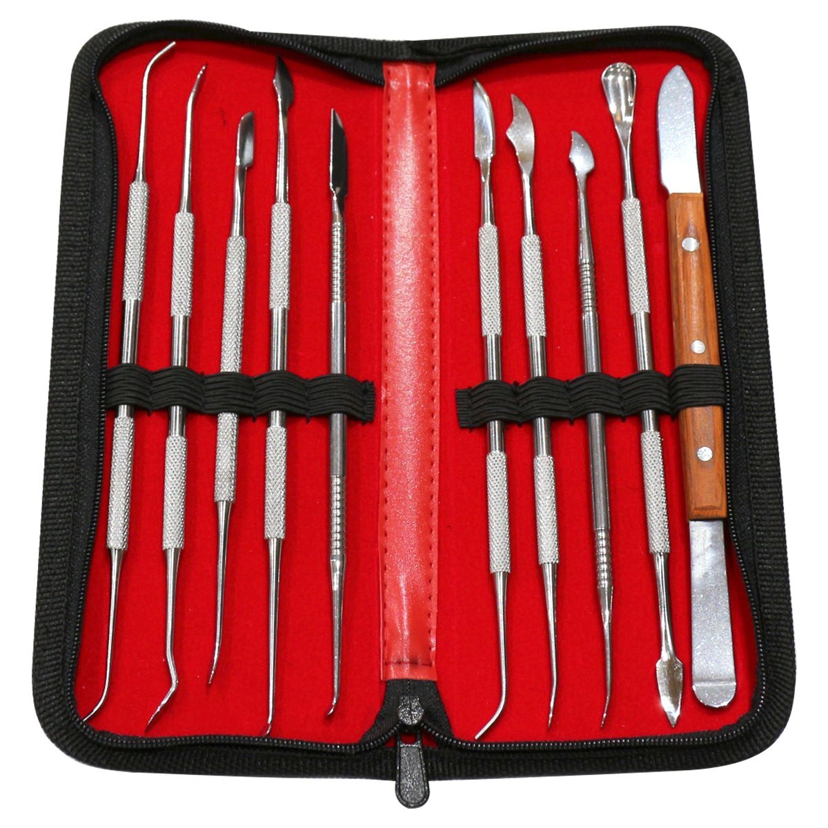 ステンレス製 モールディング スパチュラ ヘラ 10本セット ステン 工具 レザークラフト へら 粘土細工 繊細作業 専用ケース付き