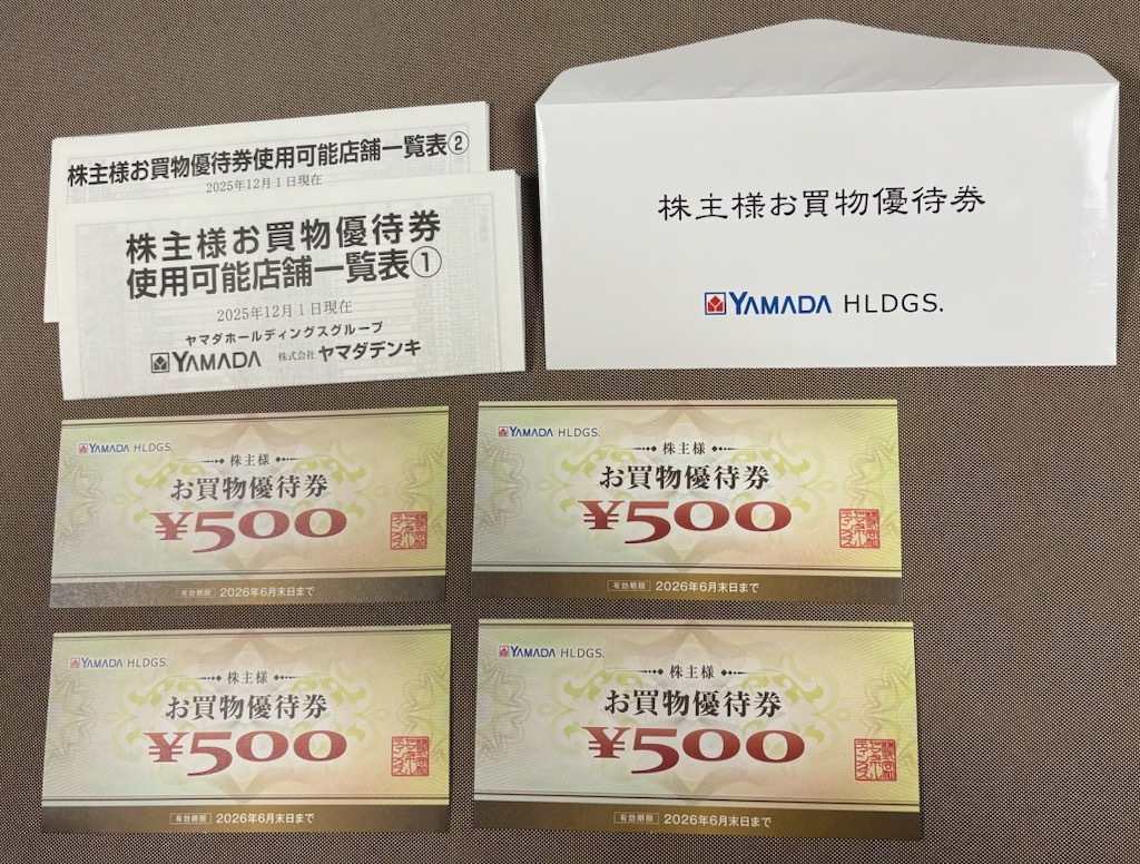 【送料無料】ヤマダデンキ/お買物優待券2,000円分(500円券×4枚)■有効期限:2026年6月末■株主優待券/ヤマダ電機/YAMADA/山田電器