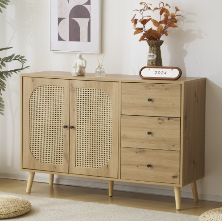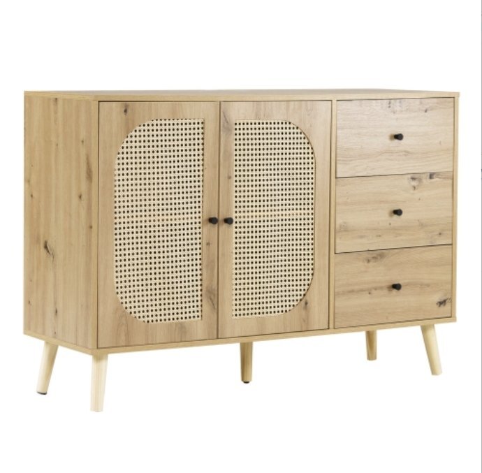 キャビネット サイドボード チェストラタン調 ラタン風 引き出し付き 大容量 収納棚 リビング 収納 ローボード 収納チェスト2段 サイドボー