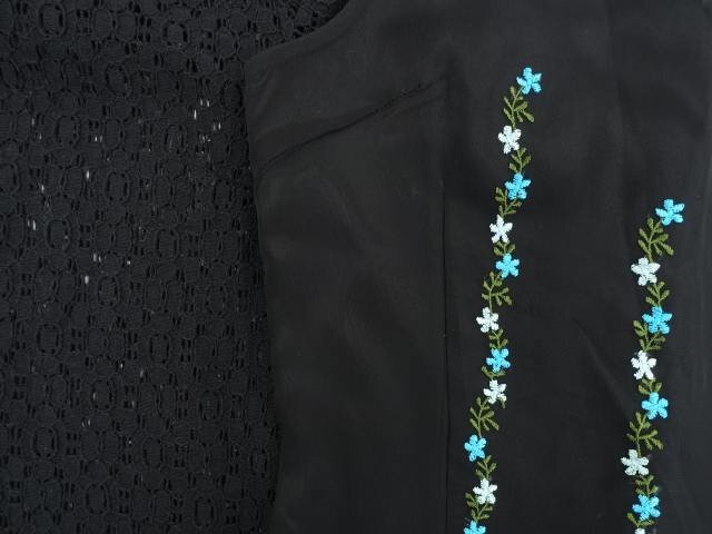 ひざ丈キャミソールワンピース+長袖カットソー コーディネート2点セット S相当 ブラック地 ブルー×サックス 花柄/ブラック 花柄 フェミニン・ガーリー系 20代