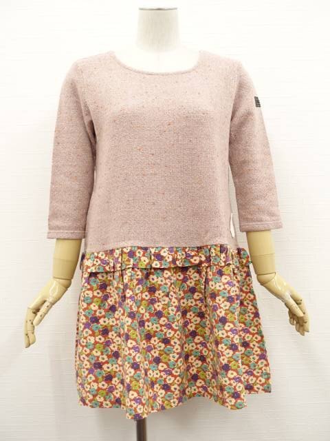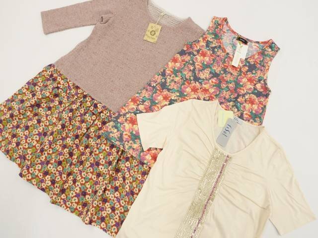 半袖カットソー+ノースリーブカットソー+七分袖ひざ丈ニットワンピース M相当 クリーム系/グレー地 オレンジ系 花柄/ピンク系 ミックス&オレンジ×パープル×グリーン 花柄