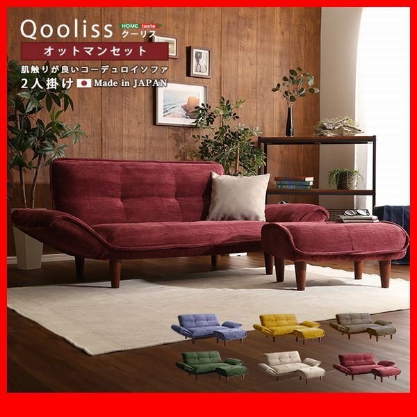 | 【ポイント】 コーデュロイ生地で肌触りが気持ちい2人掛けコンパクトソファとオットマンのセットです。 足を伸ばせてゆったりくつろげます。 背もたれ、肘置き部分は14段階リクライニング可能なのでベストな位置に調整できます。 ポケットコイル搭載で耐久性GOOD! |