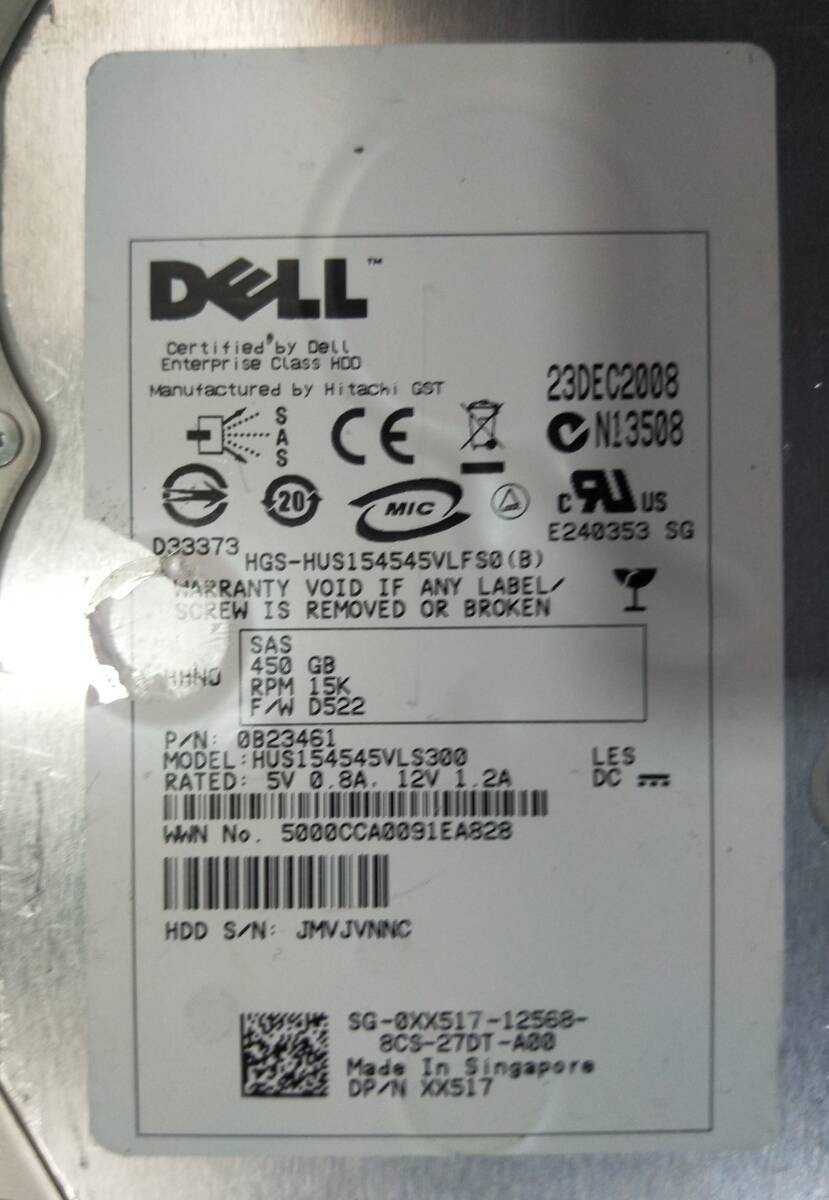 【中古パーツ】 3.5インチ DELL HGS-HUS154545VLFS0(B) 15K SAS 450GB HDD 正常品 1台■ SAS 2137