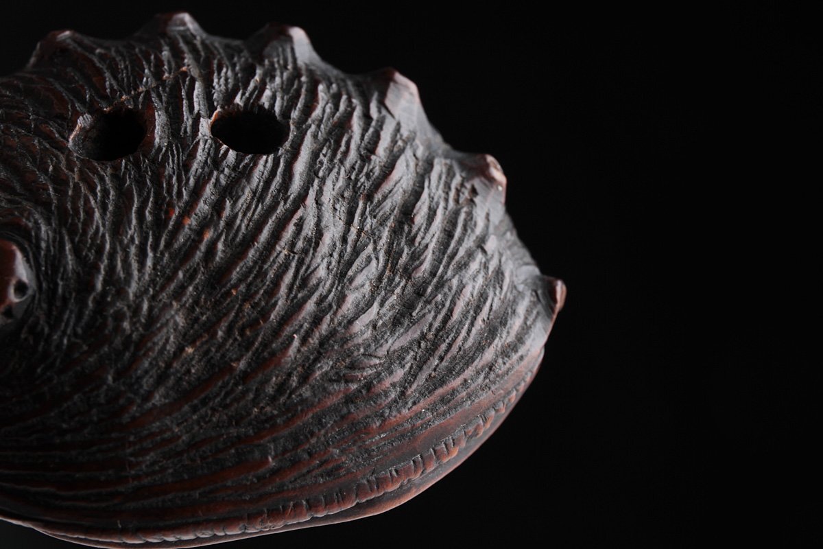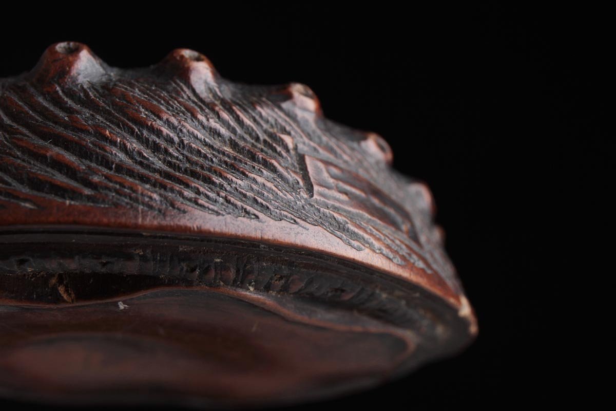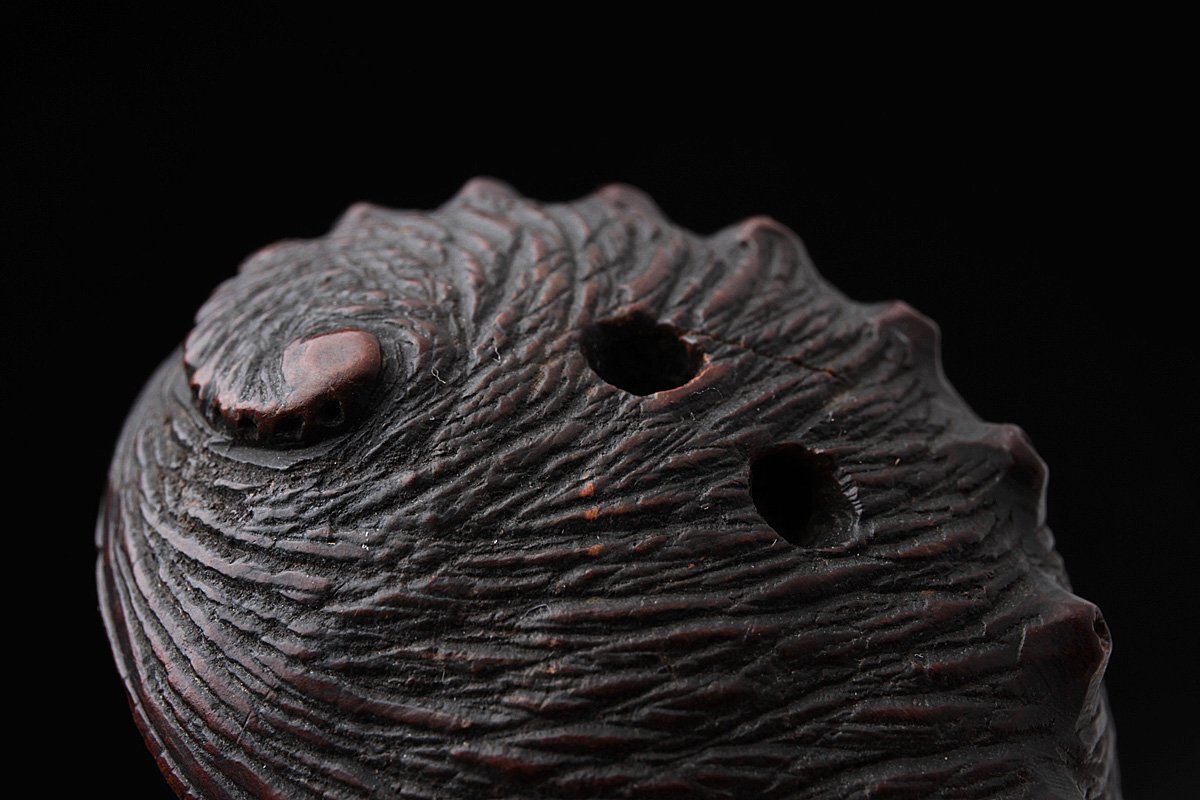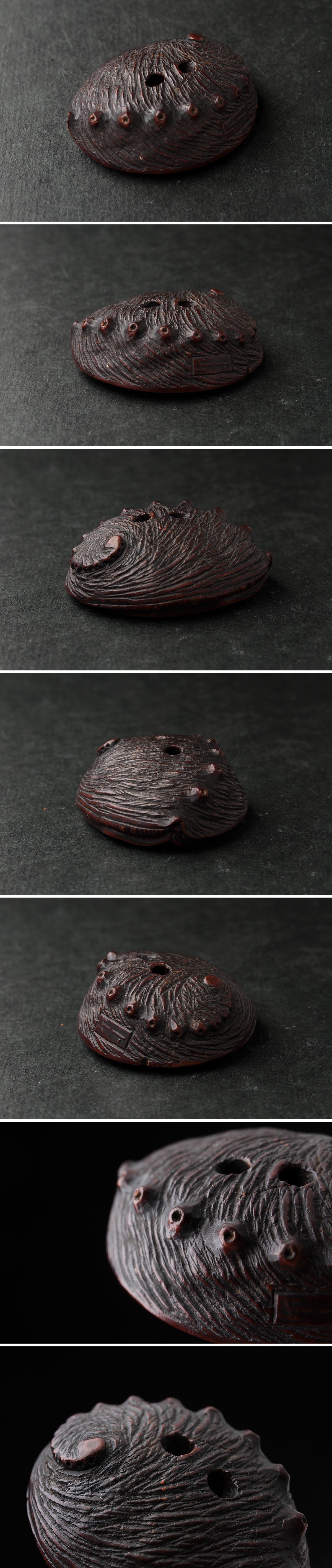 | ◆ 時代提げ物【ト山 銘】黄楊木/柘植「鮑」根付 幅4.1cm・形彫根付・あわび根付・古根付 印籠 煙草入 装飾具 古美術 ◆