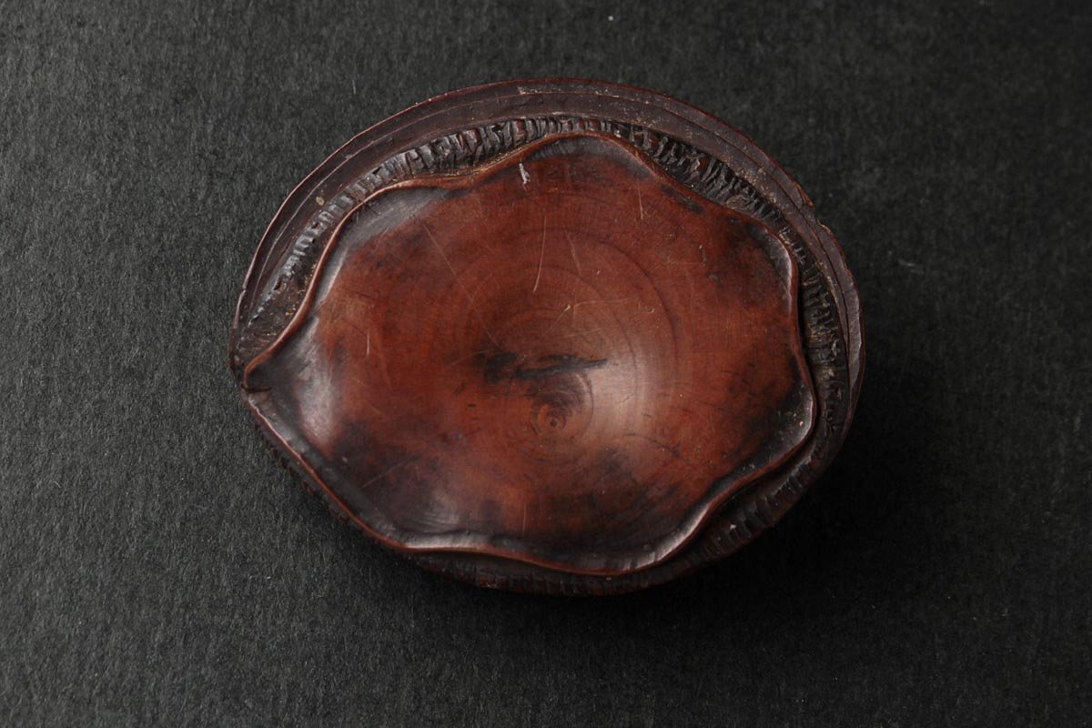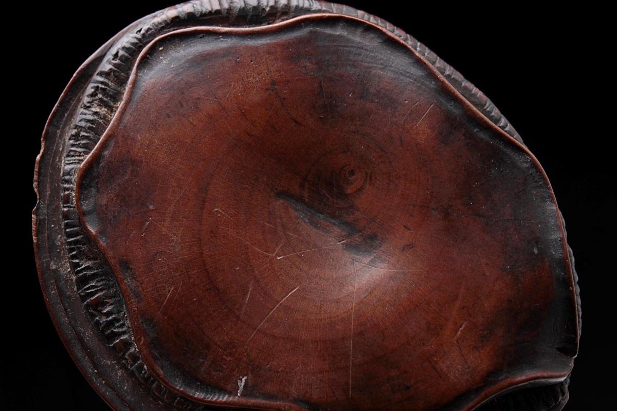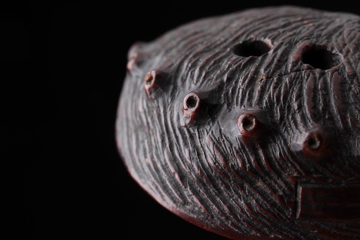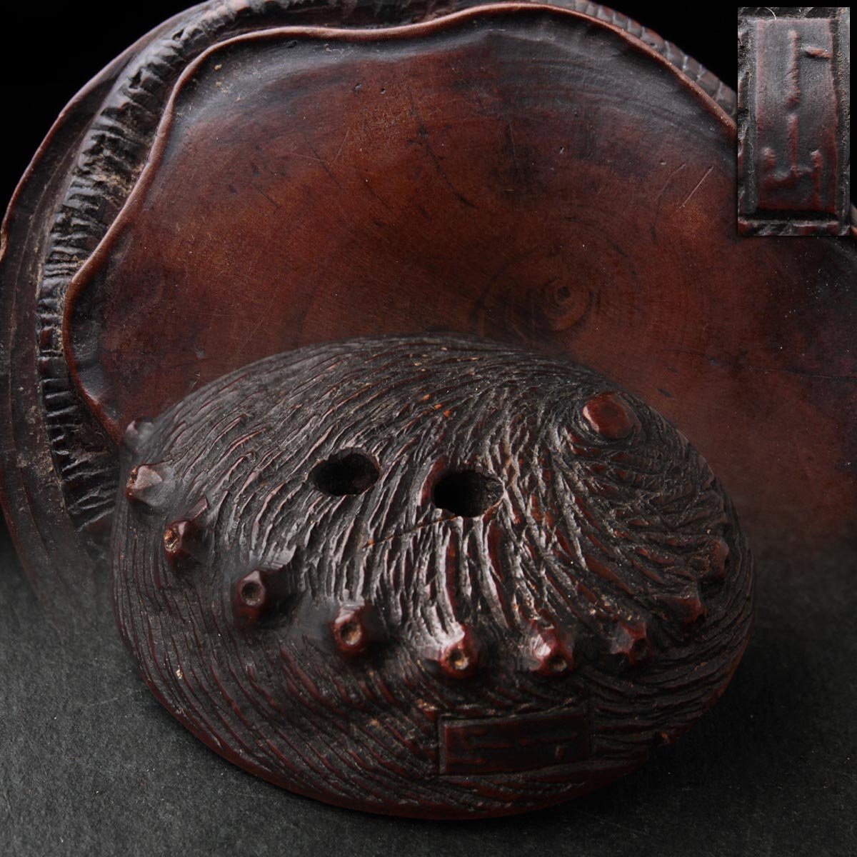 | ◆ 時代提げ物【ト山 銘】黄楊木/柘植「鮑」根付 幅4.1cm・形彫根付・あわび根付・古根付 印籠 煙草入 装飾具 古美術 ◆