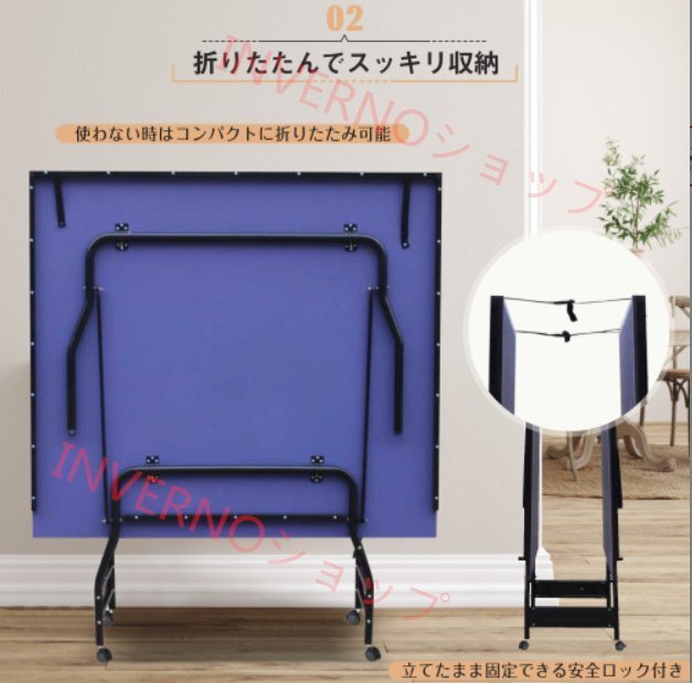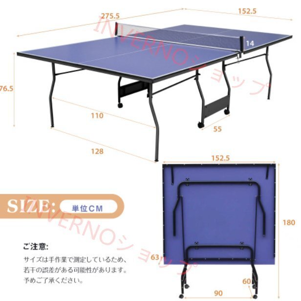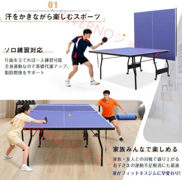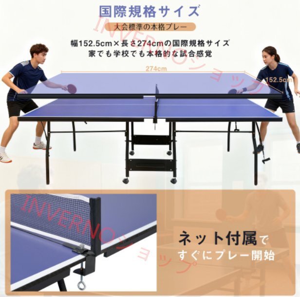 • ①国際規格サイズで本格プレー体験|幅152.5cm×長さ274cmの大会標準サイズ。家でも学校でも試合さながらの感覚を再現。ネット付属ですぐにプレー開始、片面を立てれば一人練習も可能。