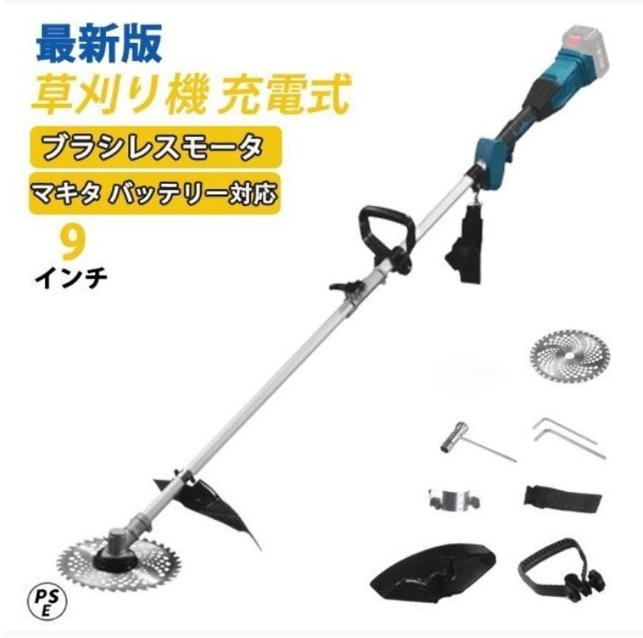 草刈り機 充電式 マキタバッテリー対応 電動 草刈機 9インチ ブラシレスモータ 刈払機 肩掛け付き 替刃付き コードレス 多機能 本体のみ
